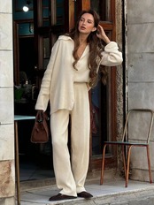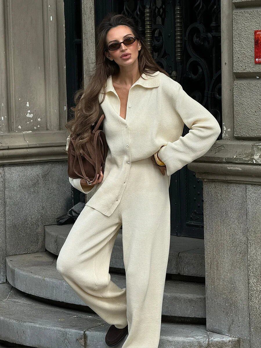 Bornladies秋冬新作ニットカーディガンパンツセットゆったりツーピースカジュアルセータースーツレディース厚手暖かいソフトニット服