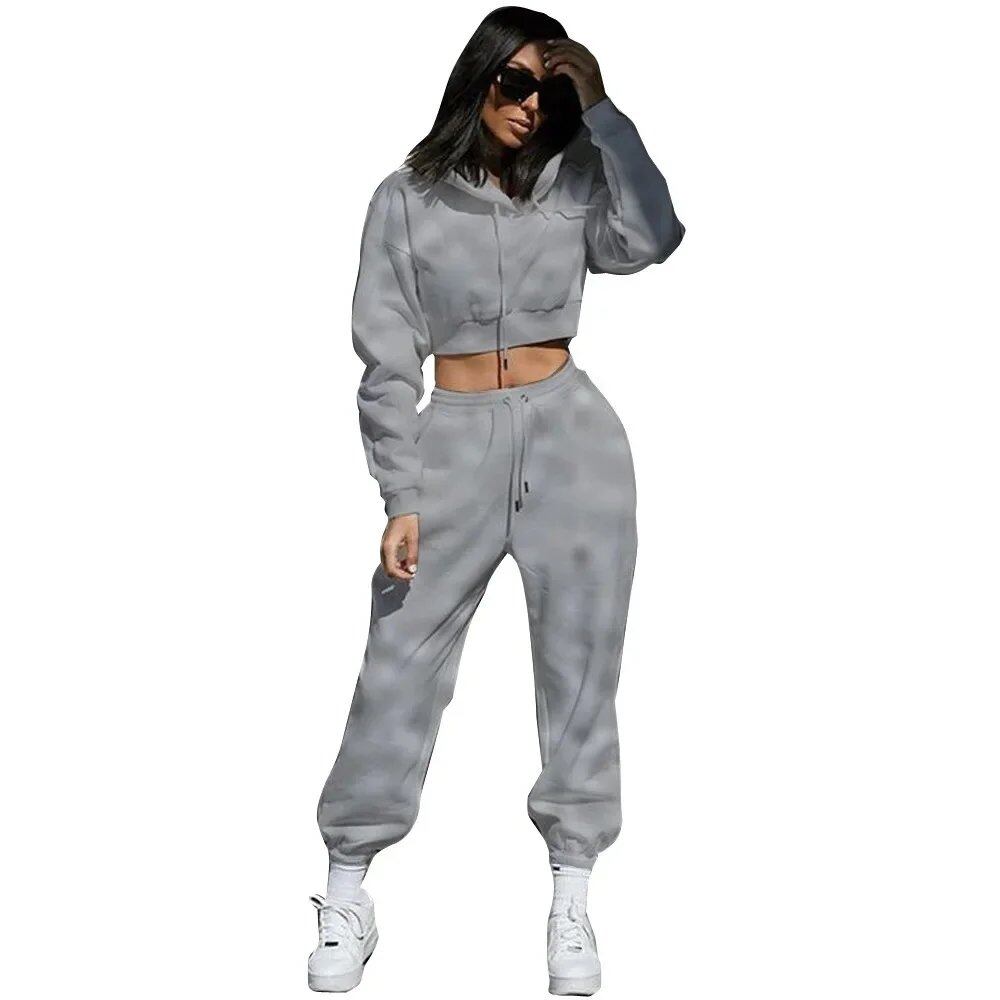 レディースフリースパーカーセット 長袖 オーバーサイズ カジュアル スポーティ ツーピースセット ポリエステル繊維 多用途 快適なフィット感