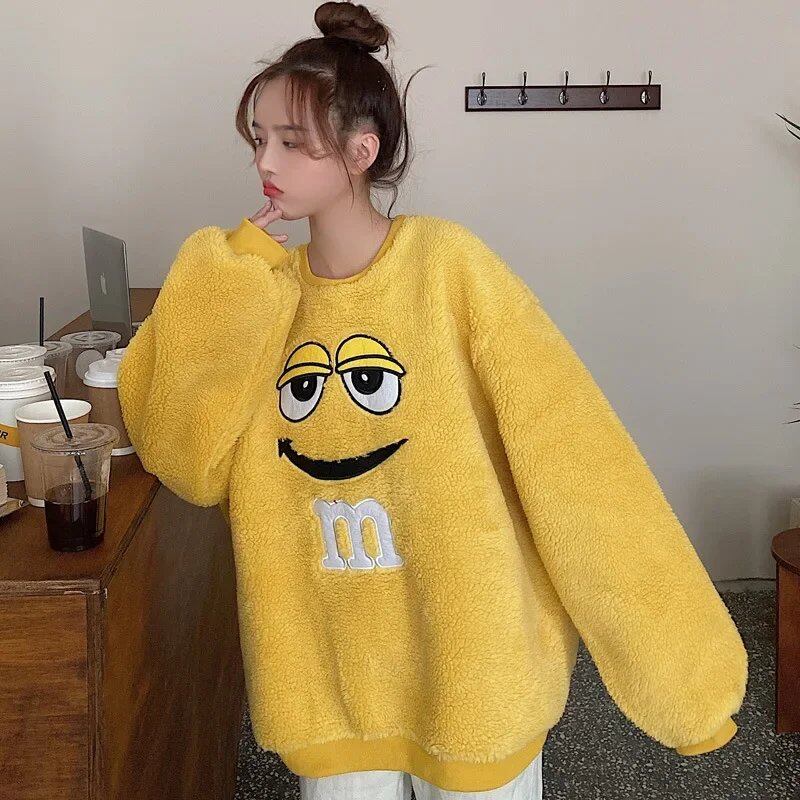 ラムウールアイドルスタイルルーズフィットスウェットシャツ女性用フリース裏地肥厚ソルトシステムストリートジャケット