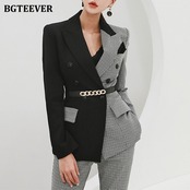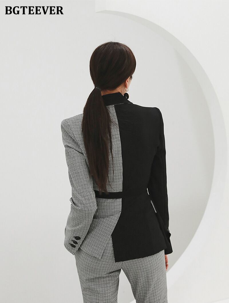 【新作】【送料無料】 BGTEEVERパッチワークレディースパンツスーツスリム千鳥格子ジャケット&ウエストパンツヴィンテージブレザーセット2020秋 オータム 秋物 ビンテージ 12b129241943447
