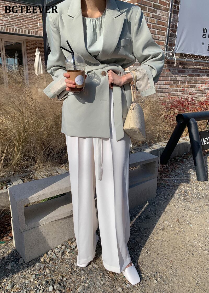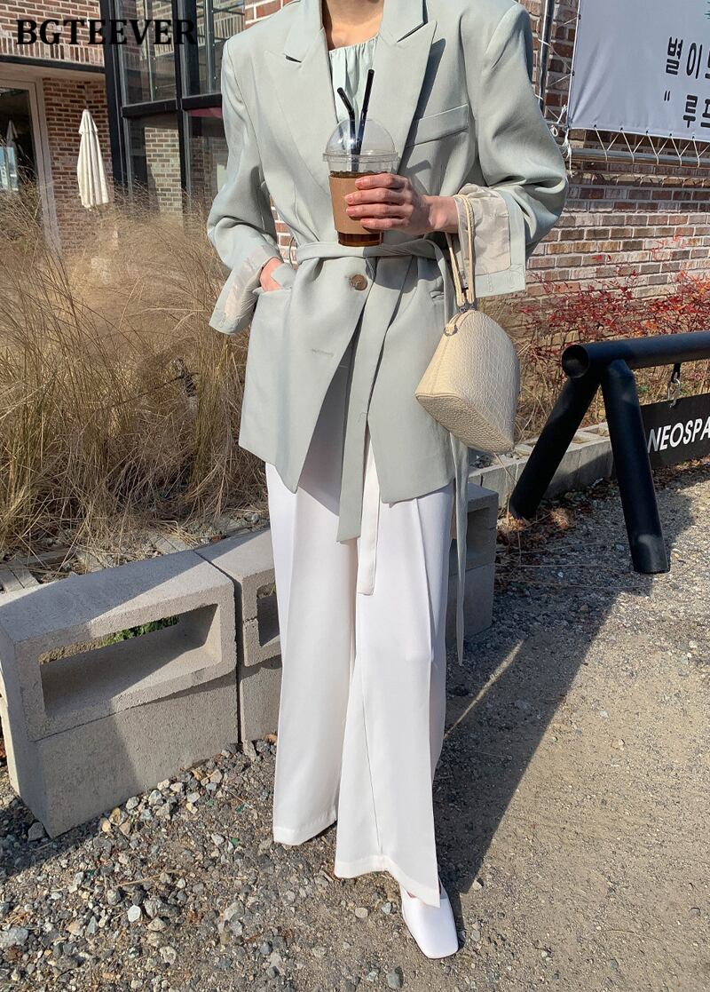 【新作】【送料無料】 BGTEEVERヴィンテージミントグリーンレディースブレザーノッチカラー長袖ベルト付きルーズスーツジャケット2020秋冬アウター ロング オータム 秋物 ウィンター 冬物 ハーネス ビンテージ 12b126392579973