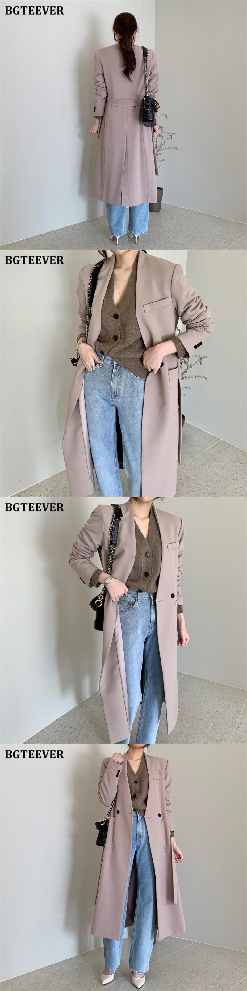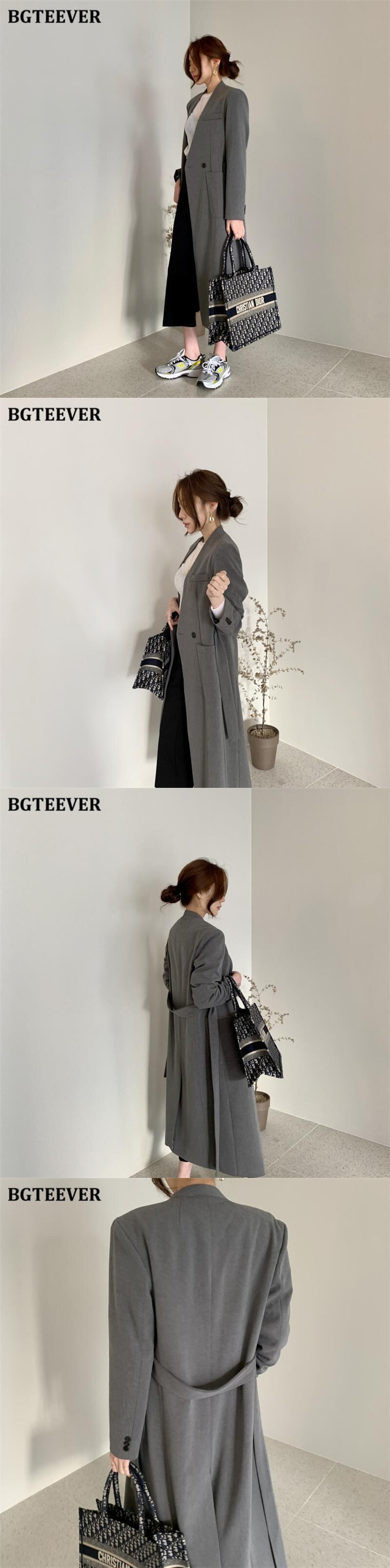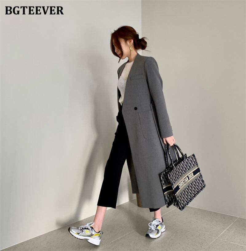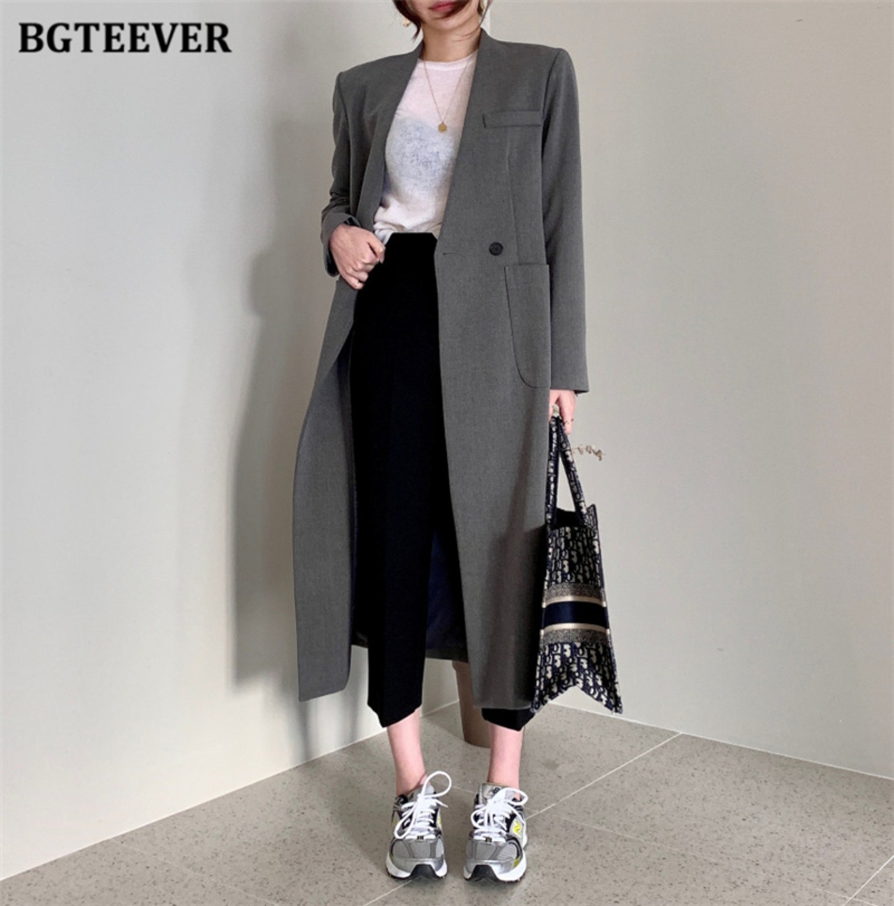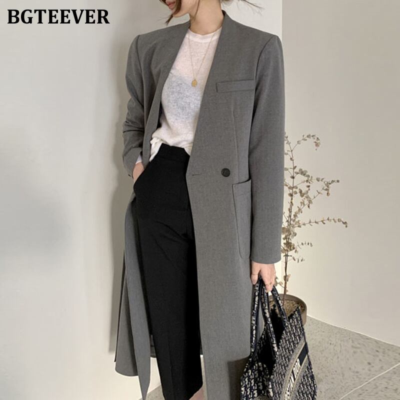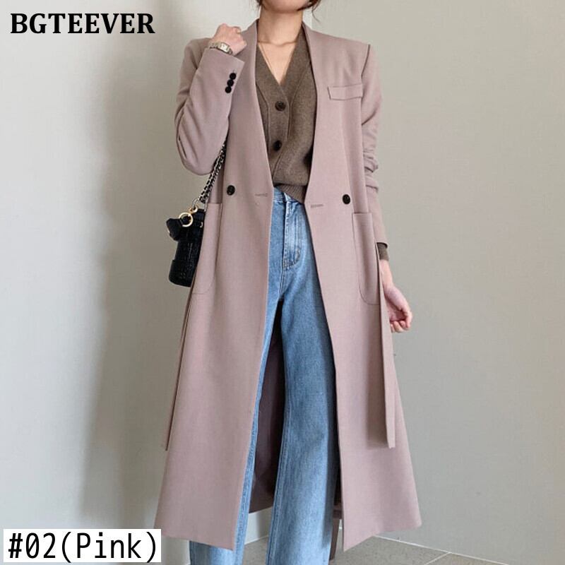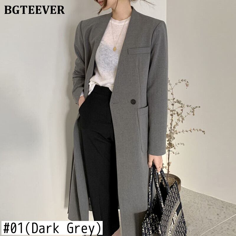 【新作】【送料無料】 BGTEEVER秋冬シックなVネックロングオーバーコート女性フルスリーブルーズブレザーコート2020ワークウェアジャケット オータム 秋物 ウィンター 冬物 12b181985323703