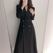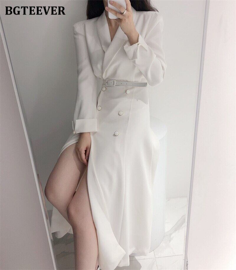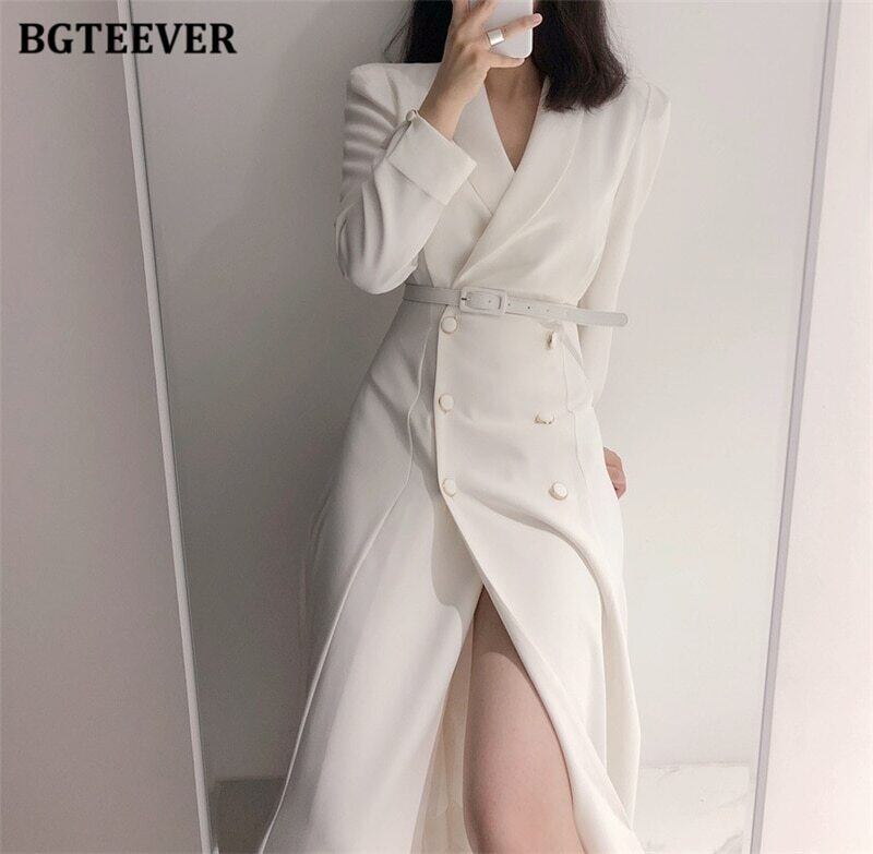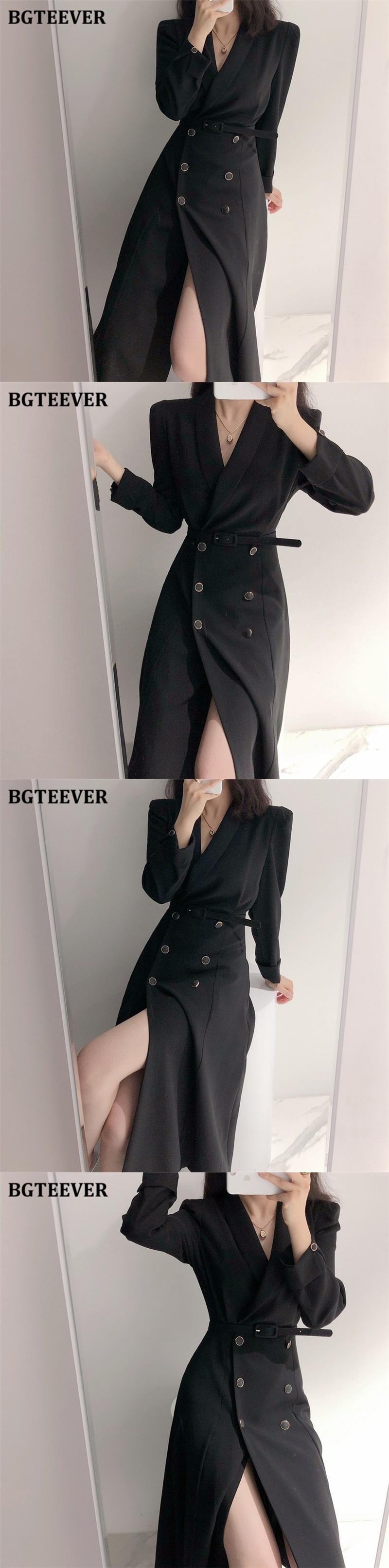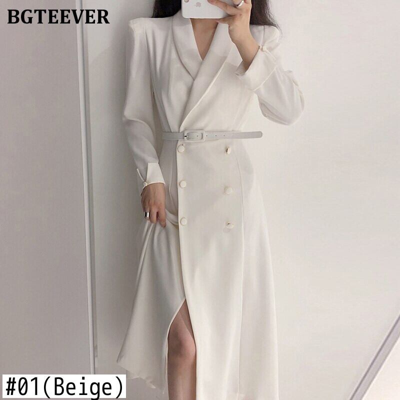 【新作】【送料無料】 BGTEEVERダブルブレストベルトサッシレディーススーツドレス2020秋のオフィスラペル長袖スリムウエストドレス ロング オータム 秋物 ハーネス 会社 学校 通勤や通学にも 12b110380305002