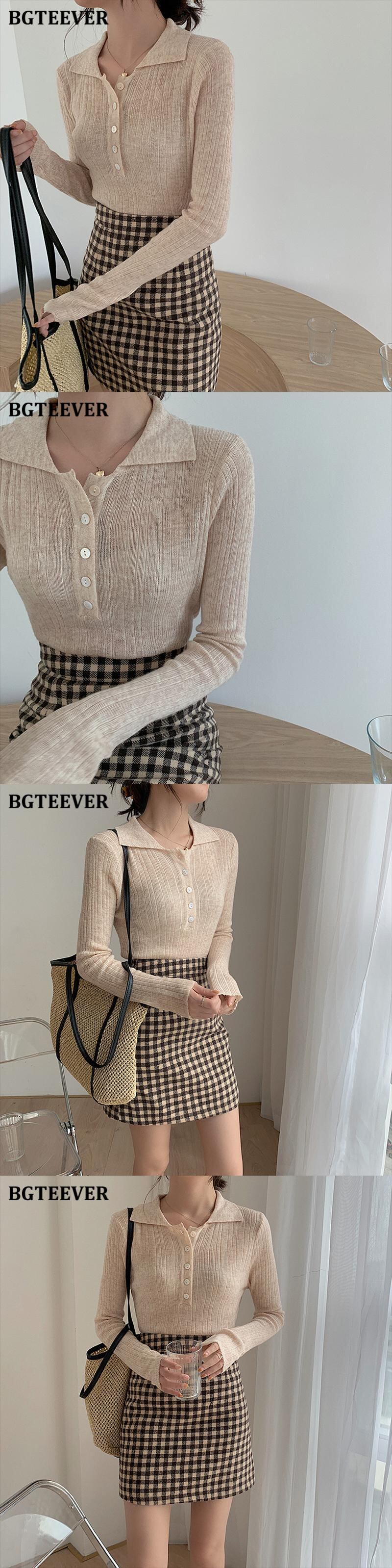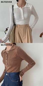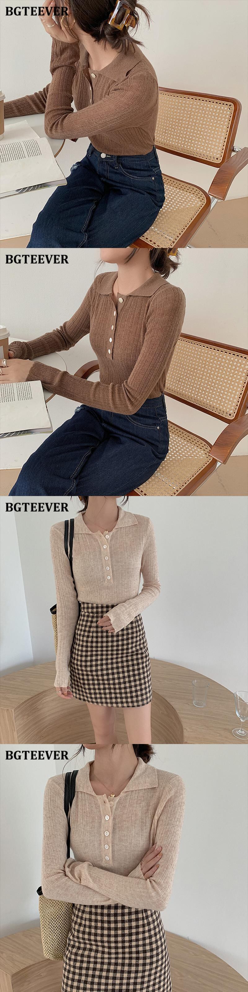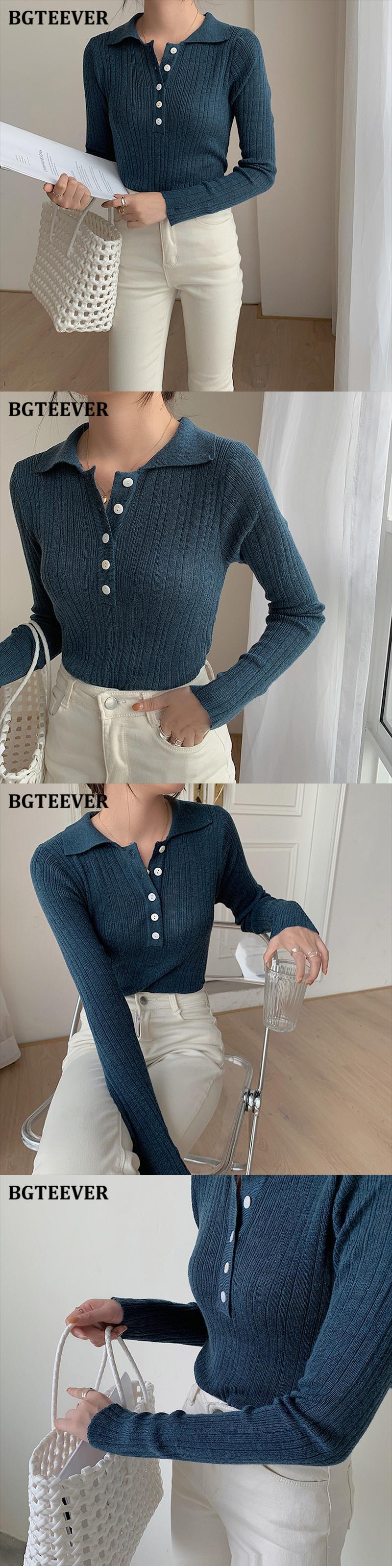 【新作】【送料無料】 BGTEEVERソリッドプルオーバージャンパーレディース2020ラペルシングルブレストスリムセーター長袖ニットトップス ロング ソリッドカラー 12b164718592815