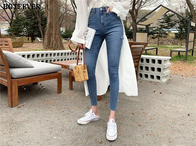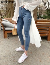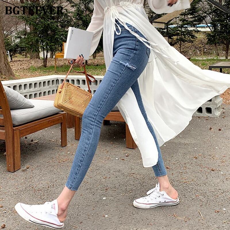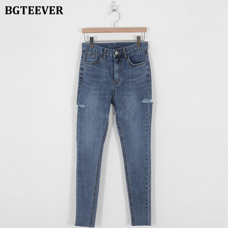 【新作】【送料無料】 スキニーウエストジーンズパンツレディースストリートウェア破れた穴ストレッチペンシルデニムパンツ 12b162899985762