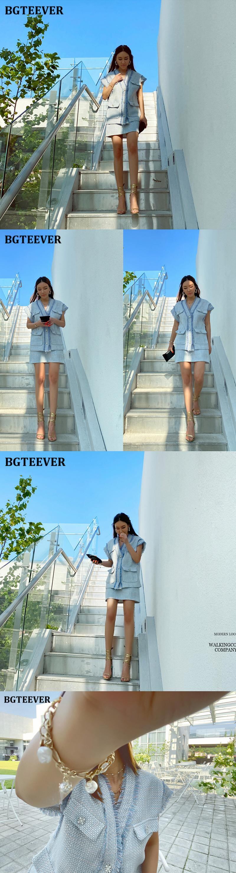 【新作】【送料無料】 BGTEEVERヴィンテージスカートスーツシングルブレストチョッキ&ペンシルミニスカート2020夏秋2点セット サマー 夏物 オータム 秋物 ビンテージ 12b197524534052