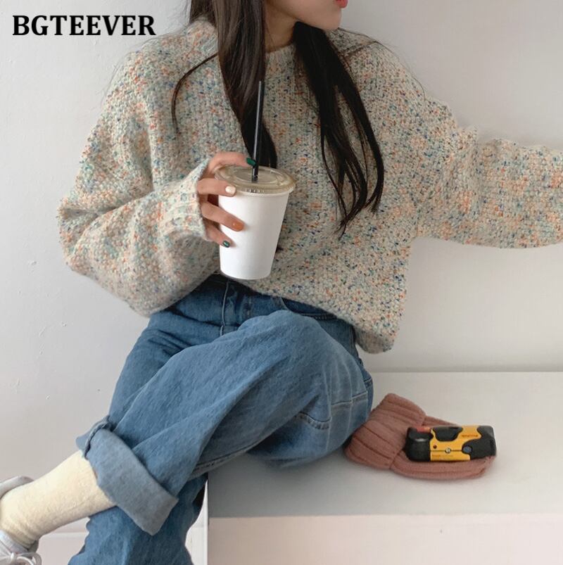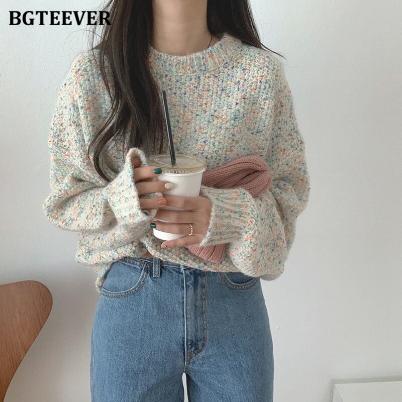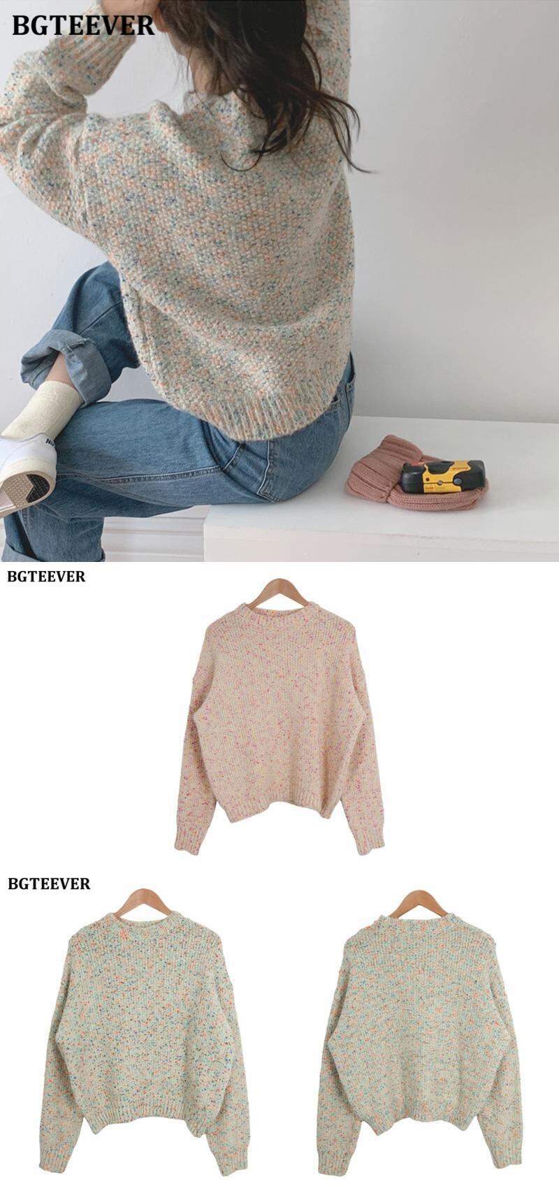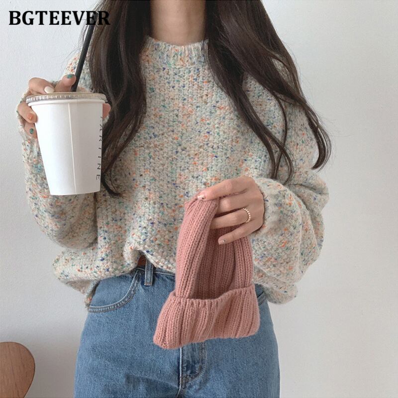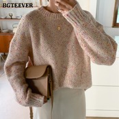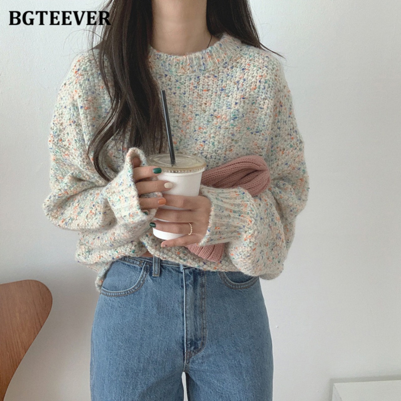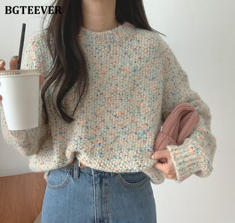 【新作】【送料無料】 BGTEEVERルーズOネックレディースセータージャンパー秋冬長袖シックニットプルオーバー2020ウォームニットウェア ロング オータム 秋物 ウィンター 冬物 12b152657460406