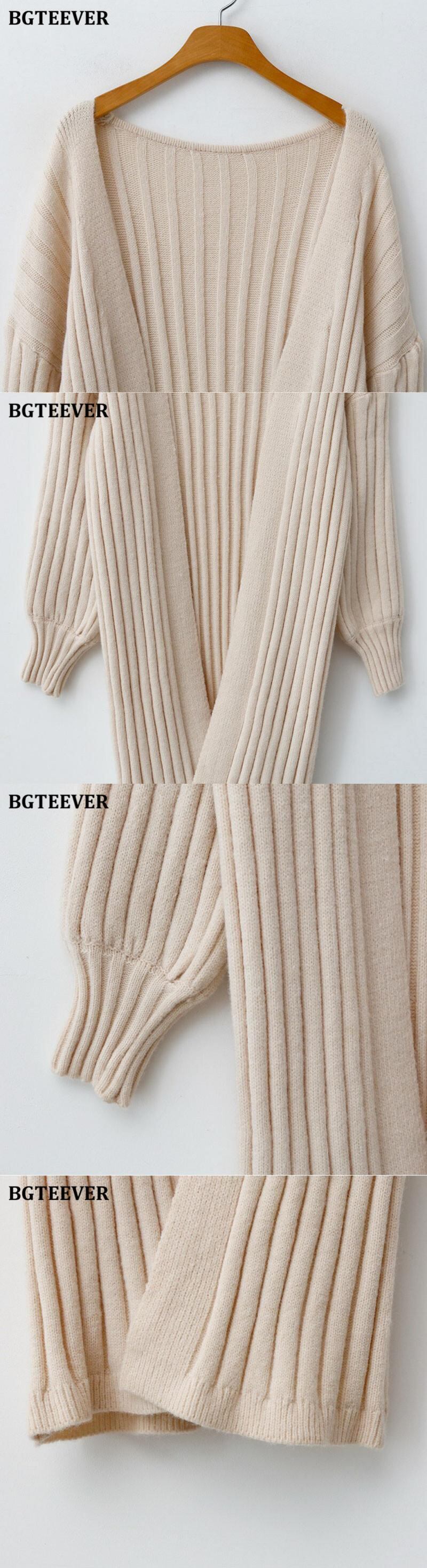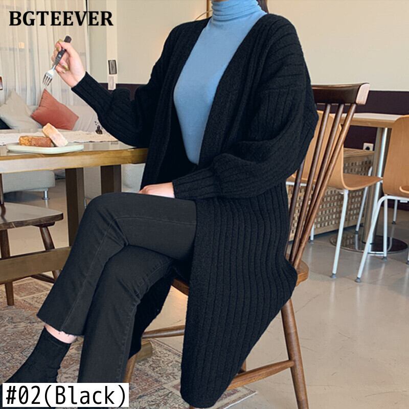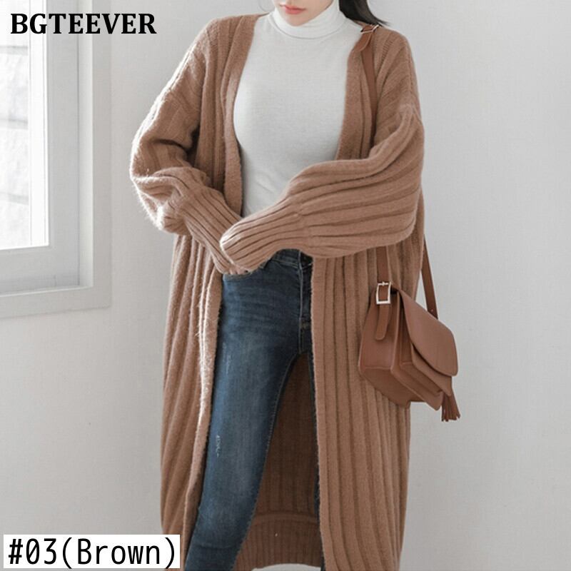 【新作】【送料無料】 BGTEEVER厚手の暖かい秋冬の女性ロングオープンステッチセーター2020特大のソリッドニットカーディガントップス オータム 秋物 ウィンター 冬物 ソリッドカラー 12b181563602247