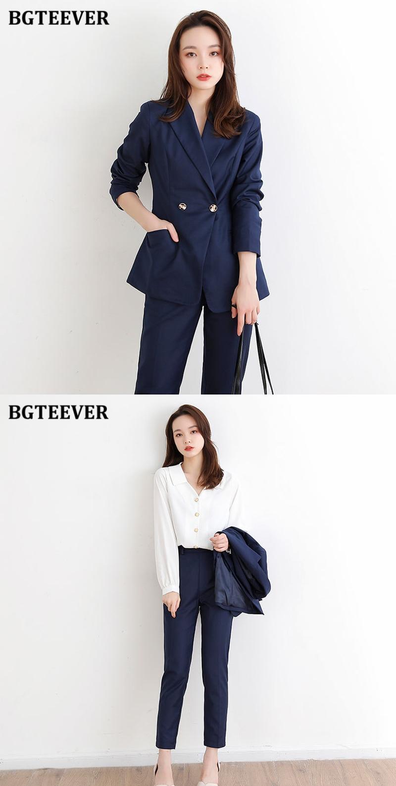 【新作】【送料無料】 BGTEEVER秋の女性2ピースブレザーセットノッチ付きカラージャケット&ウエストパンツ2020ワークビジネスパンツスーツ オータム 秋物 12b128524437860