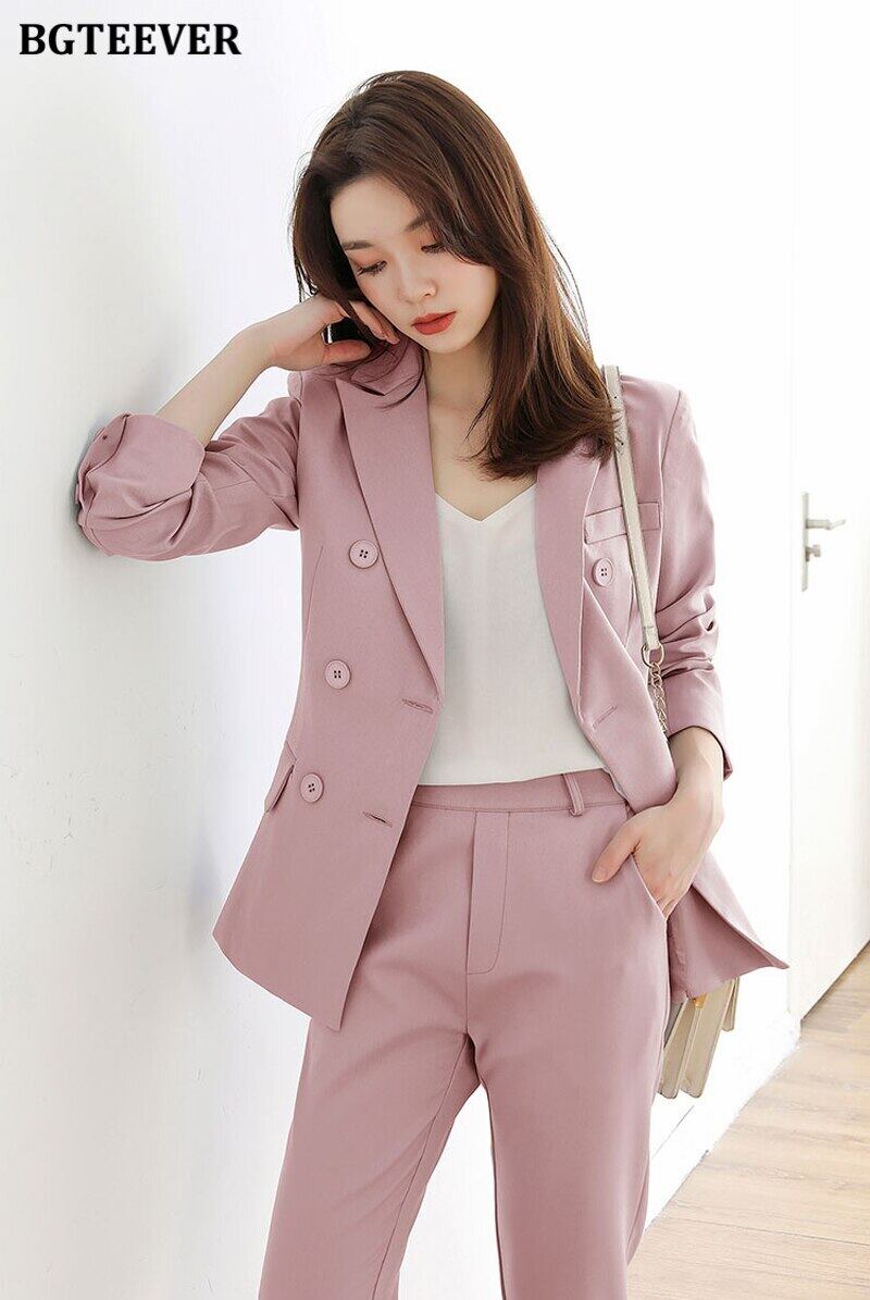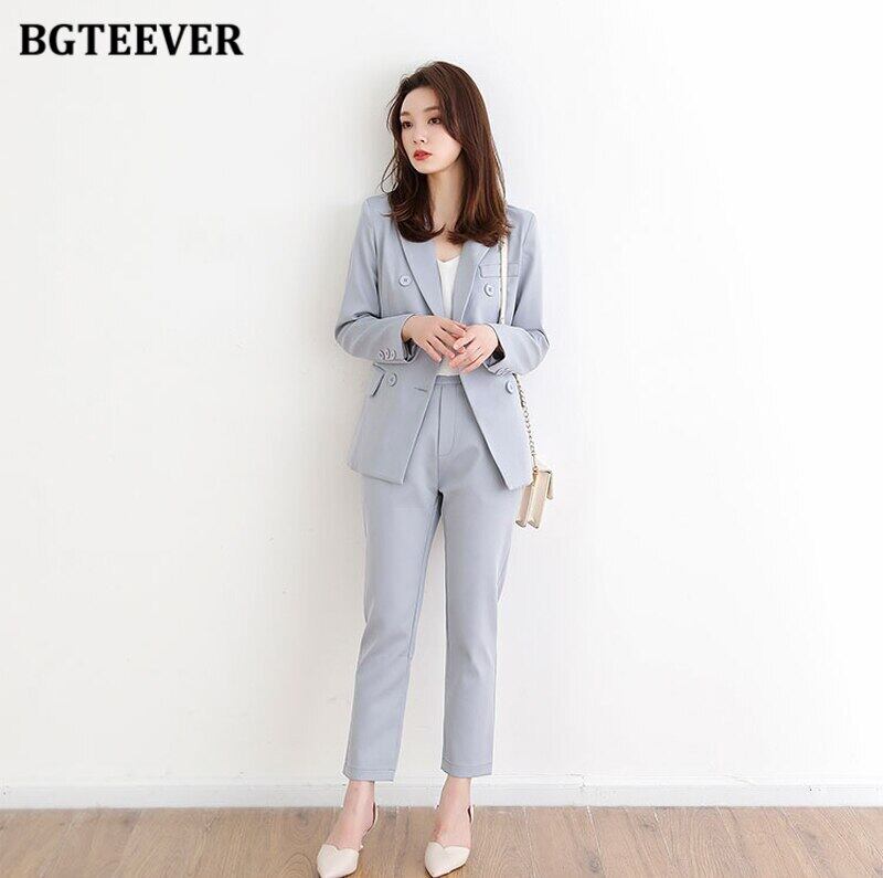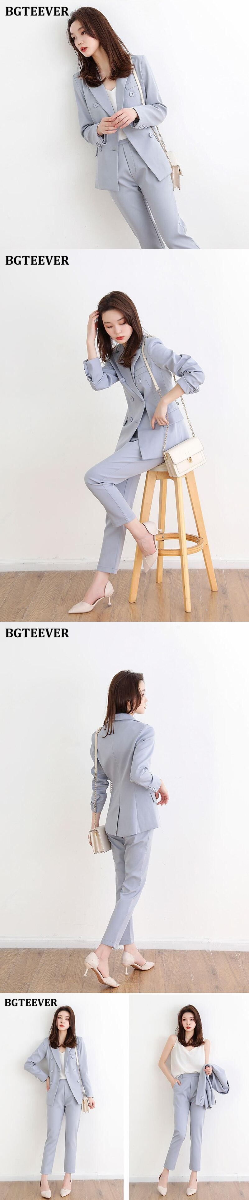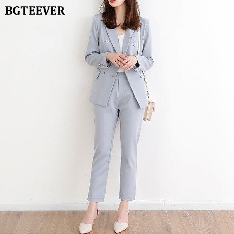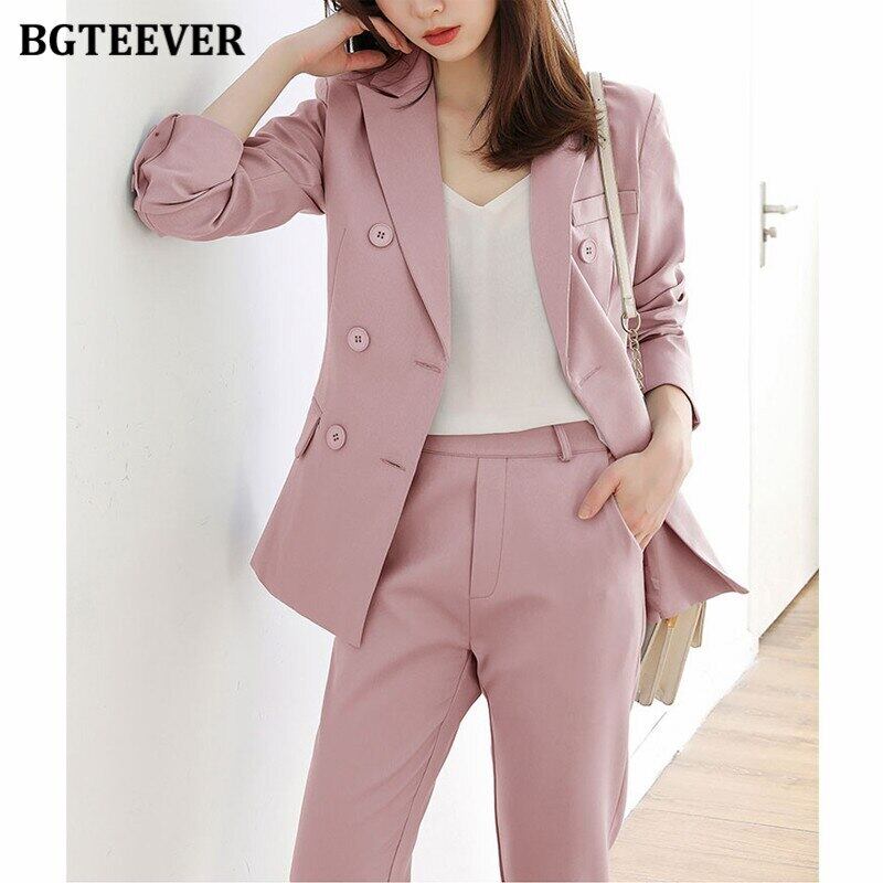 【新作】【送料無料】 BGTEEVERダブルブレストパンツスーツレディース長袖ジャケット&ペンシルパンツ2020オータムブレザーセット2点セット ロング 秋物 12b141845536281