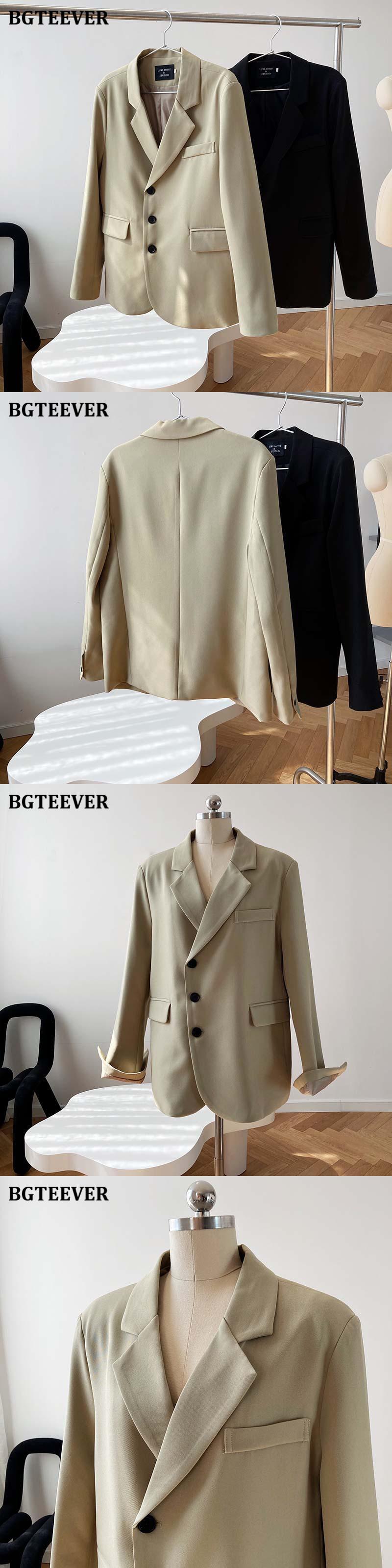 【新作】【送料無料】 BGTEEVERヴィンテージソリッドシングルブレストレディースブレザースタイリッシュルーズアウタートップス2020オータムスーツジャケット 秋物 ソリッドカラー ビンテージ 12b160871283801