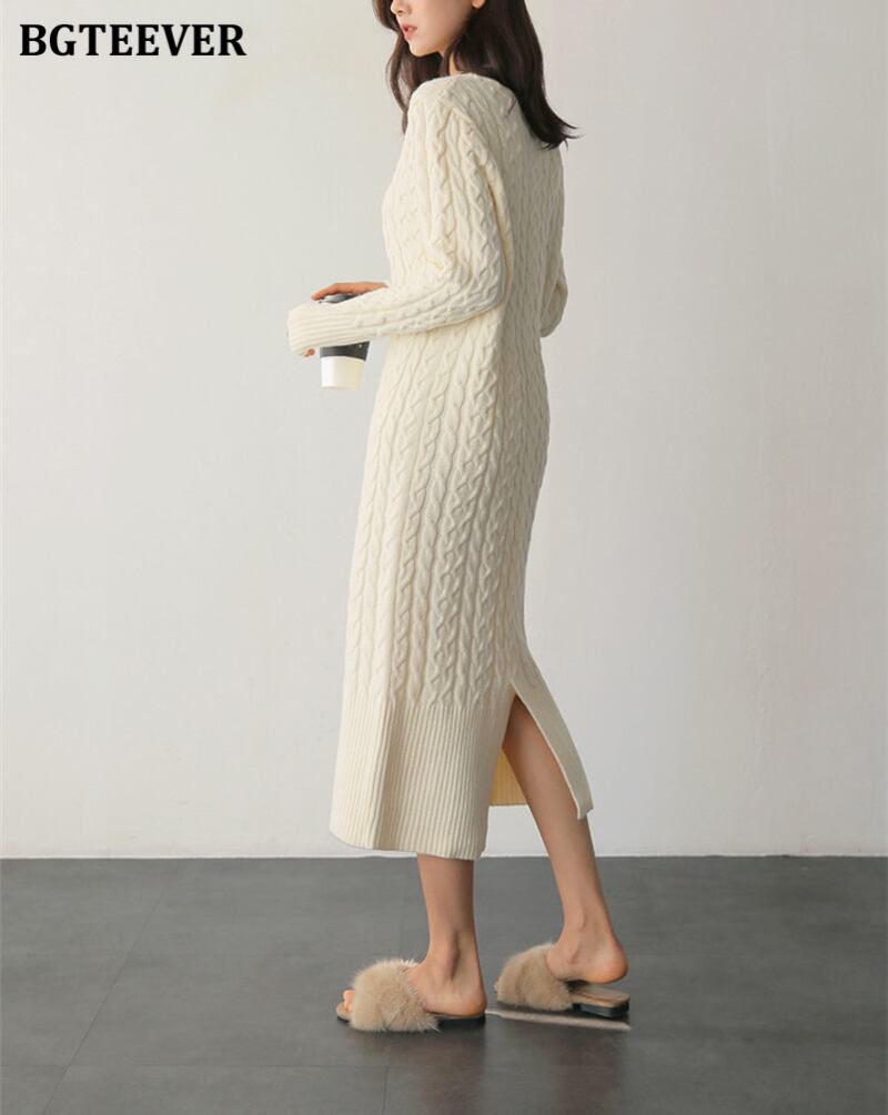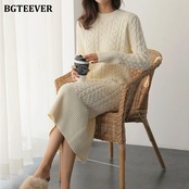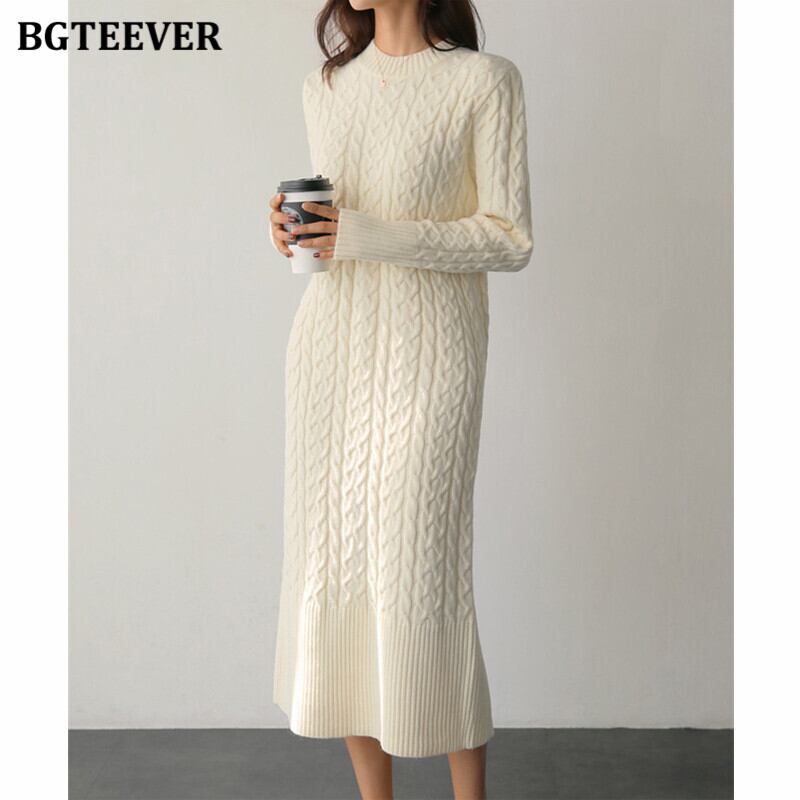 【新作】【送料無料】 BGTEEVERヴィンテージOネックツイストニットドレスルーズストレートレディースドレス2020秋冬セーターVestidos オータム 秋物 ウィンター 冬物 ビンテージ 12b128002565348