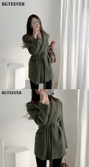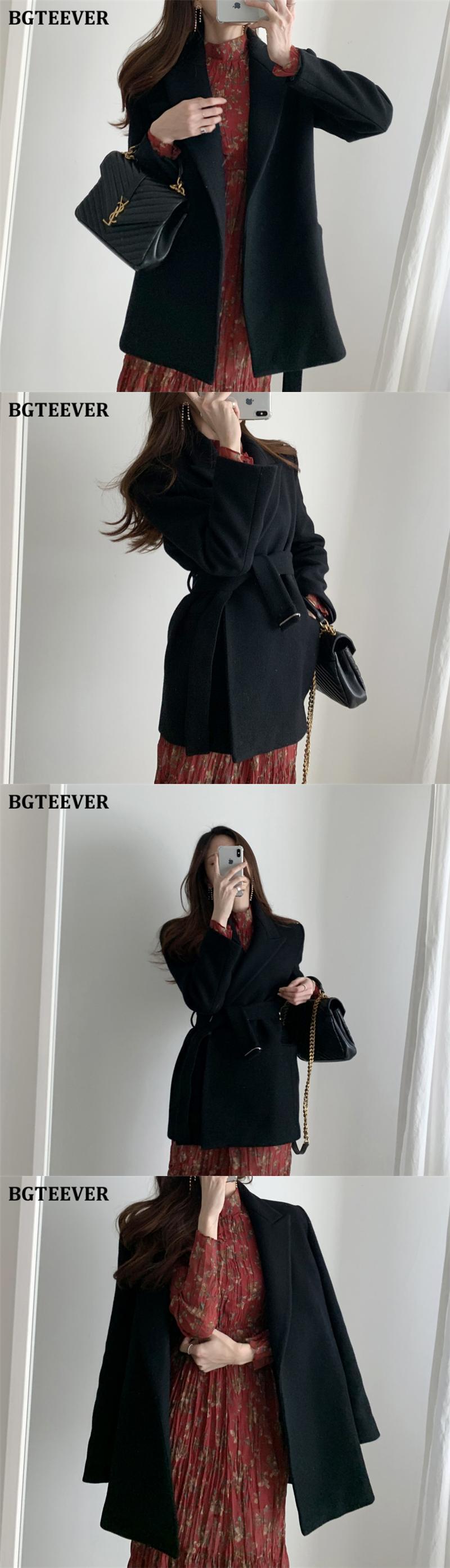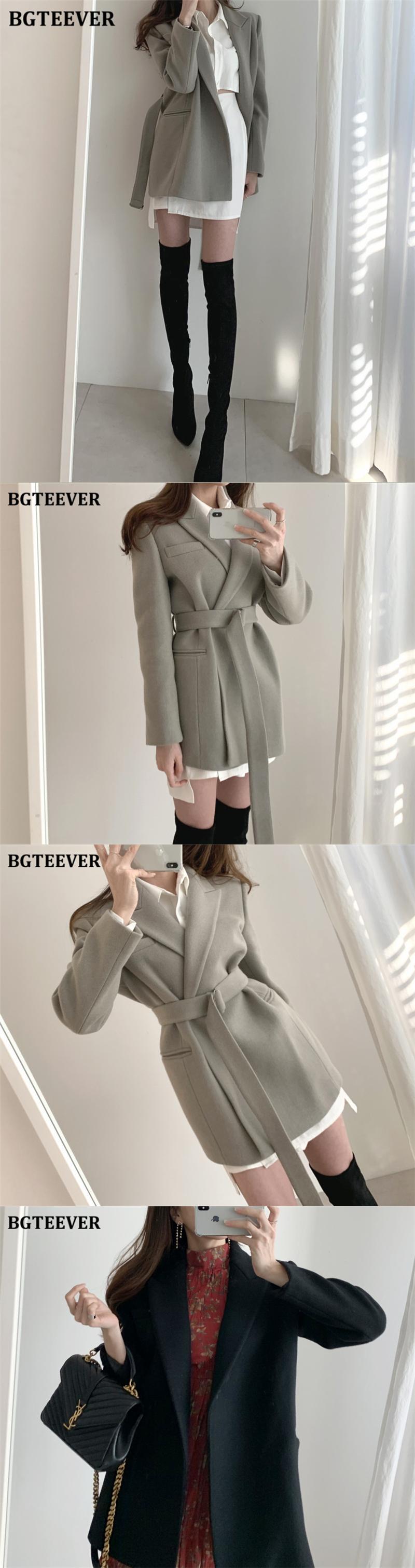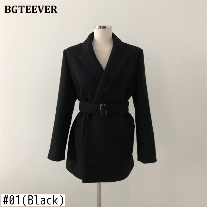【新作】【送料無料】 BGTEEVERシックなウール&ブレンドブレザー女性秋冬厚手の暖かいフルスリーブベルトサッシスーツジャケット2020 オータム 秋物 ウィンター 冬物 ハーネス 12b137244912870