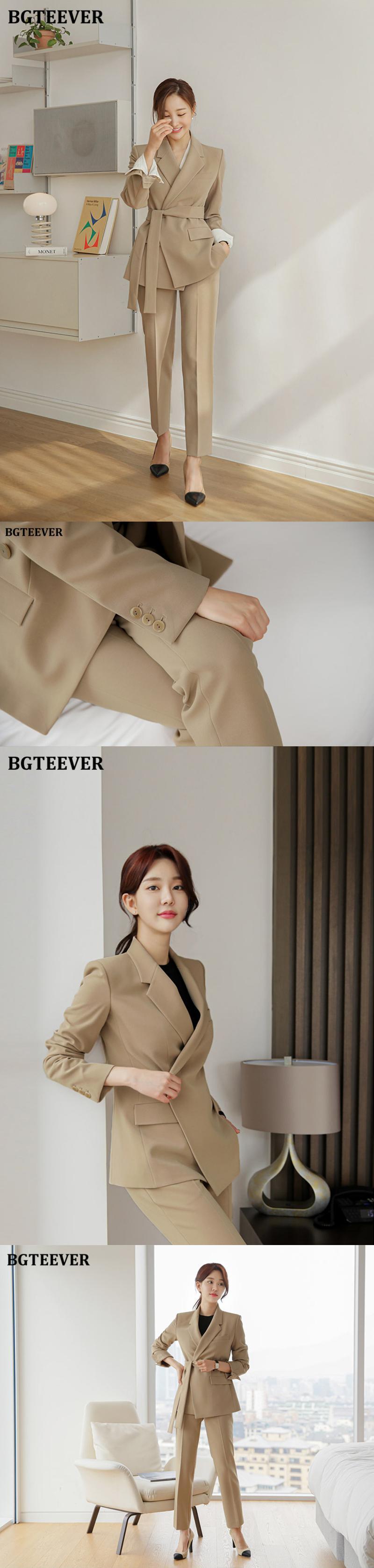 【新作】【送料無料】 BGTEEVERオフィスパンツスーツワンボタンレースアップブレザー&スーツパンツ2020秋冬スタイリッシュな女性ブレザーセット オータム 秋物 ウィンター 冬物 会社 学校 通勤や通学にも 12b140763024425