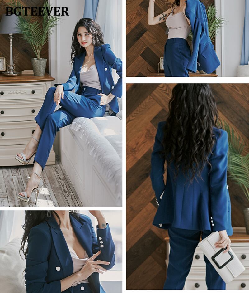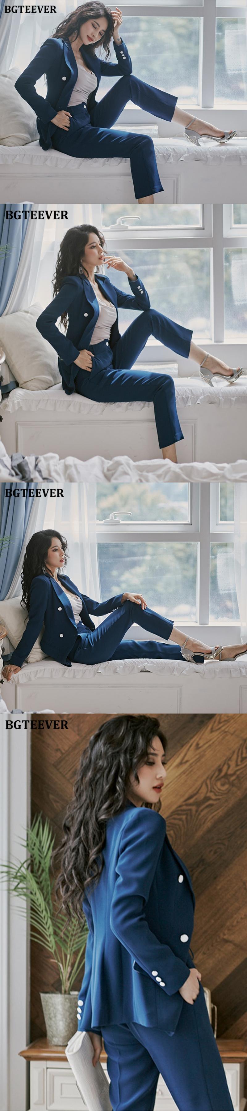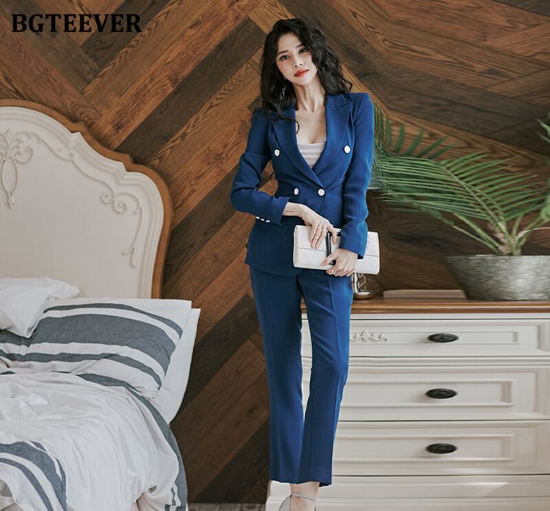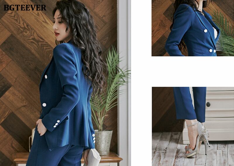 【新作】【送料無料】 BGTEEVERスタイリッシュな女性ブレザーセットダブルボタンスリムジャケット&ウエストパンツ2020秋冬OLスタイル女性パンツスーツ オータム 秋物 ウィンター 冬物 12b154346762943