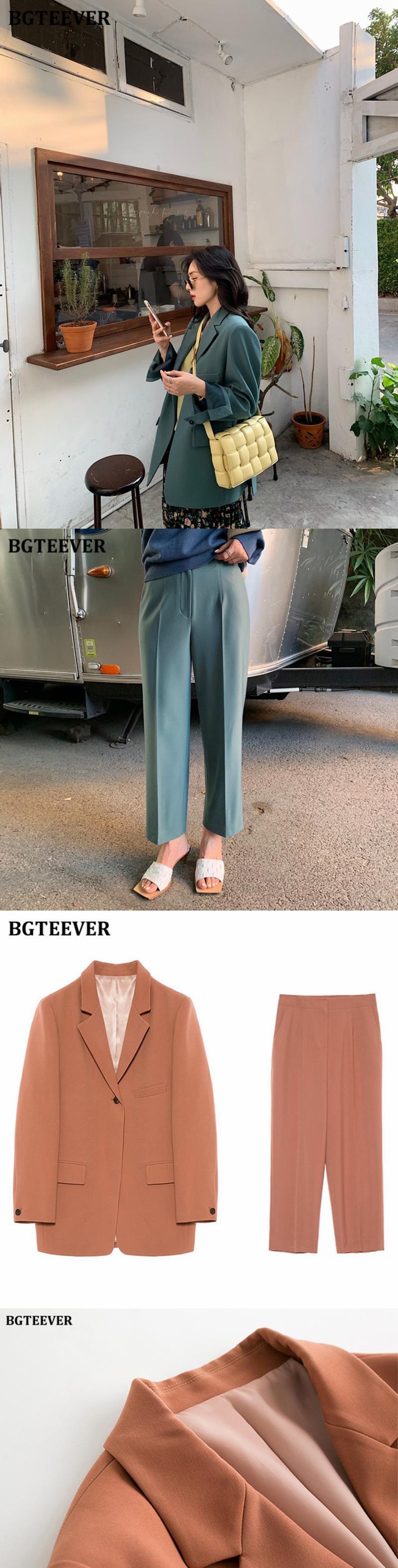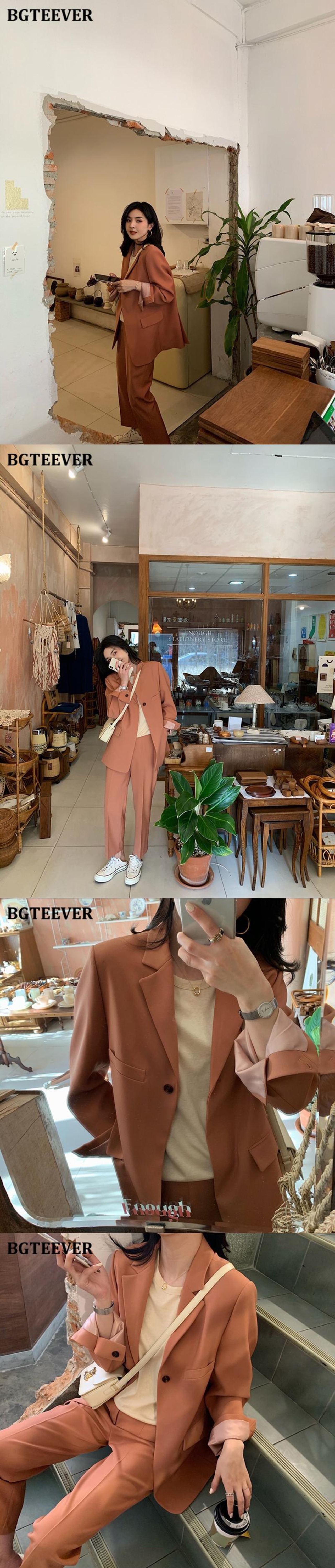 【新作】【送料無料】 BGTEEVER2ピースセットレディースパンツスーツシングルボタンジャケット&ウエストルーズパンツ2020秋スタイリッシュブレザースーツ オータム 秋物 12b196772184639