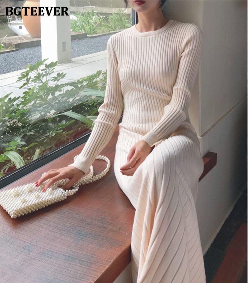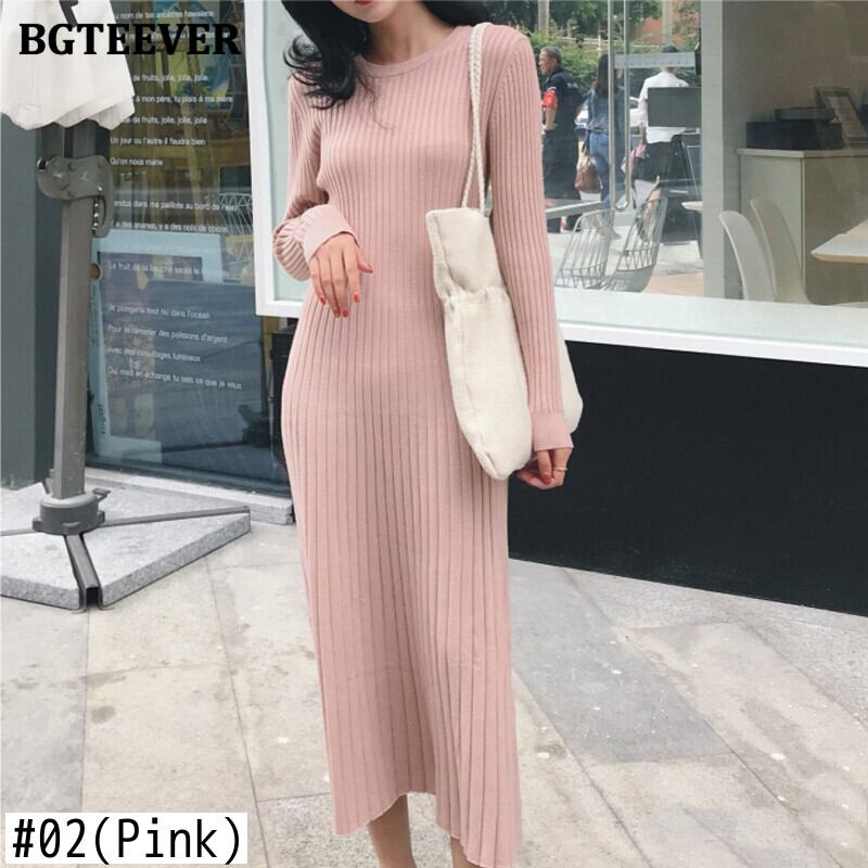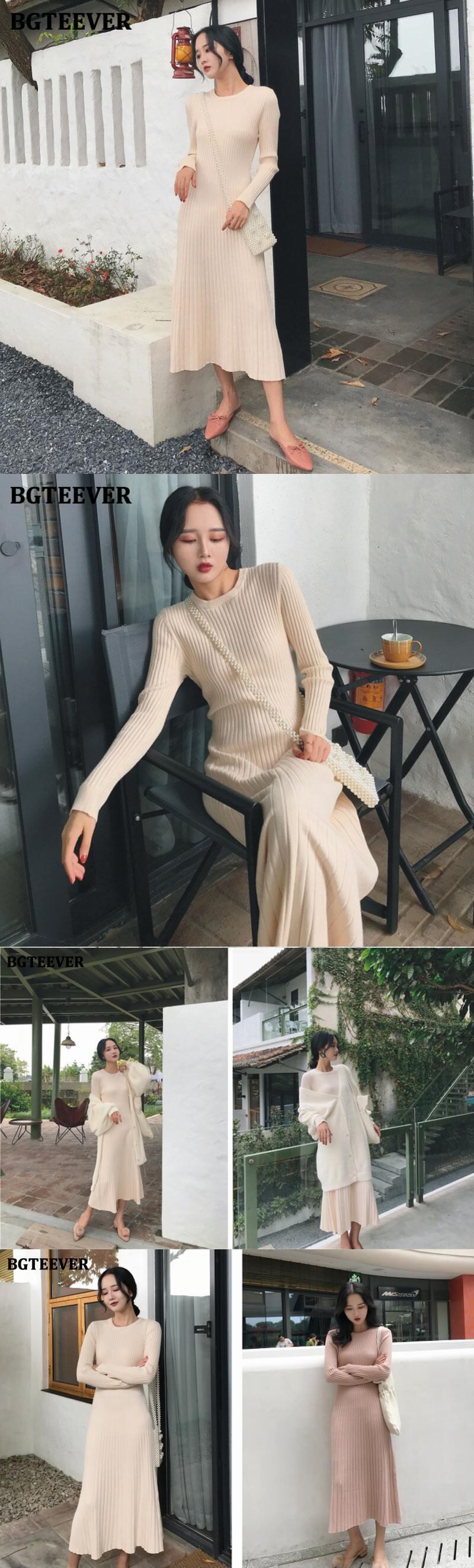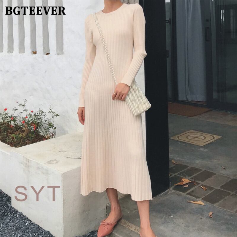 【新作】【送料無料】 BGTEEVEROネックベーシックストレッチレディースニットワンピースフルスリーブAラインセーターワンピース秋冬 オータム 秋物 ウィンター 冬物 12b182714549544