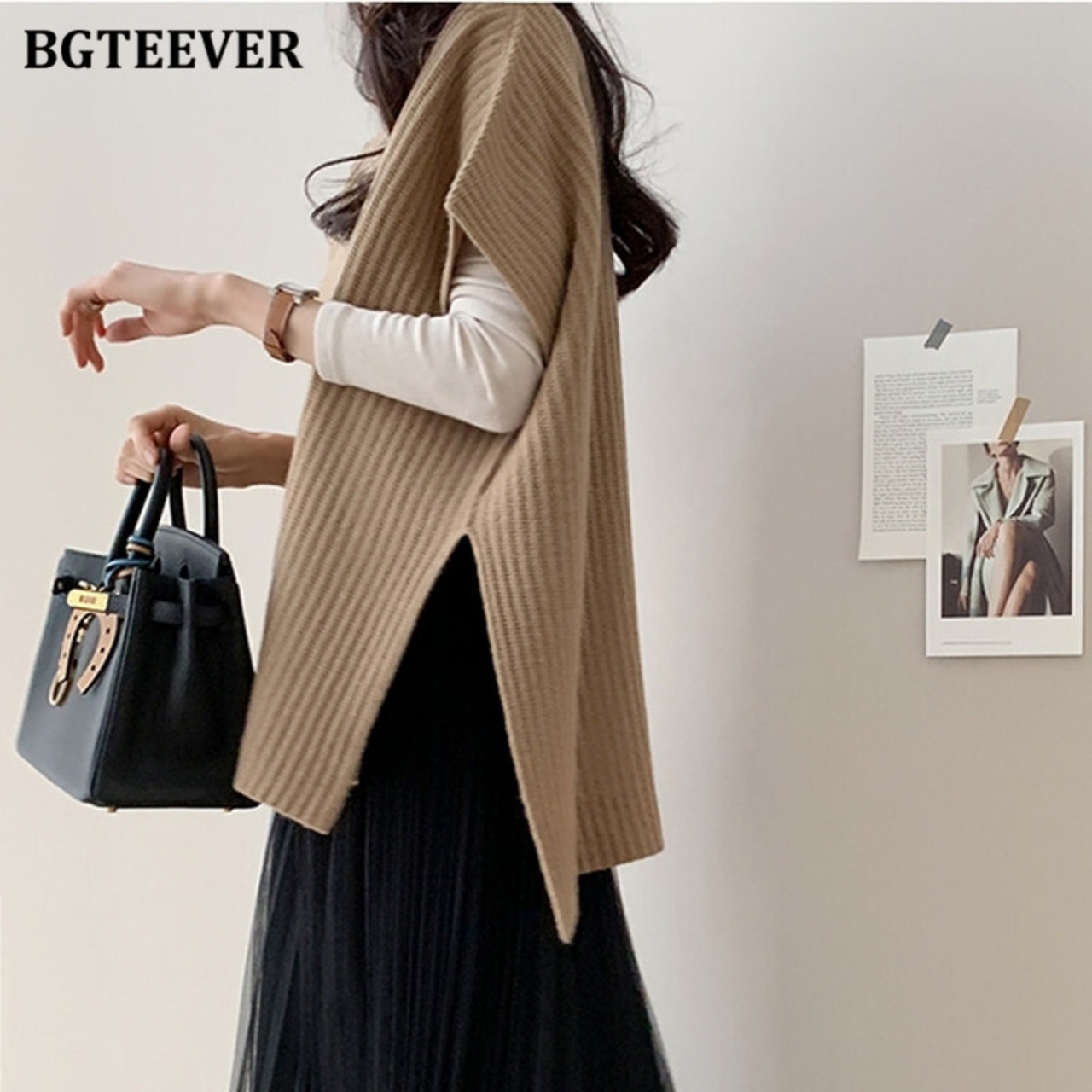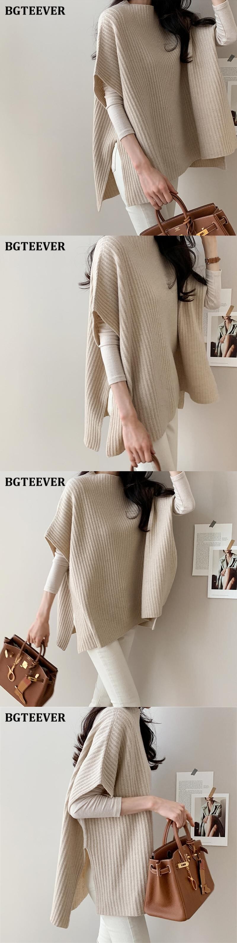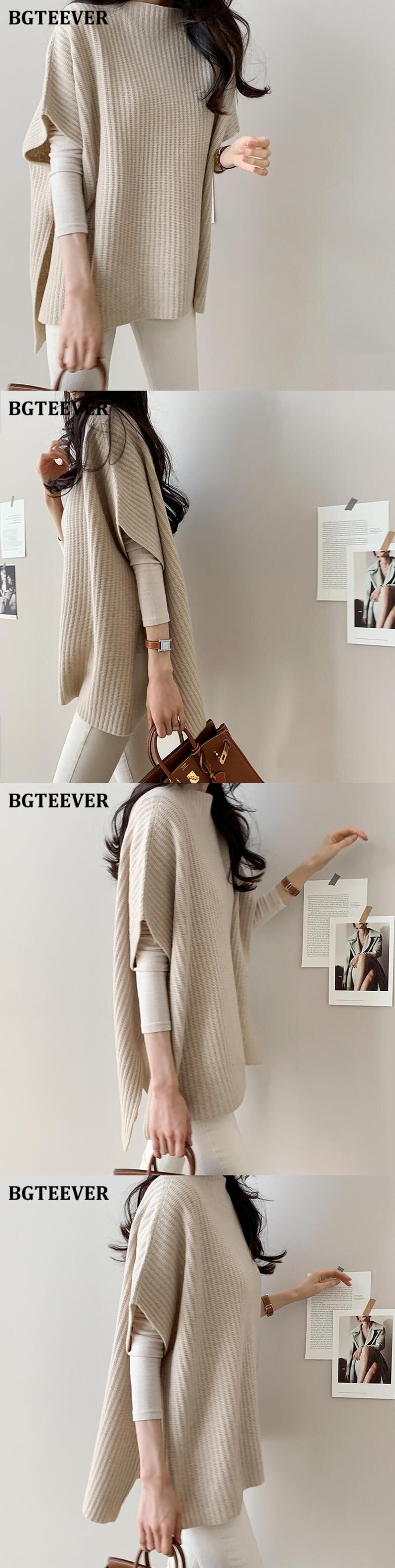 【新作】【送料無料】 vBGTEEVERハーフタートルネックルースウィミンニットプルオーバー秋冬半袖サイドスプリットセータージャンパー ショート ハーフスリーブ オータム 秋物 ウィンター 冬物 12b163104266534