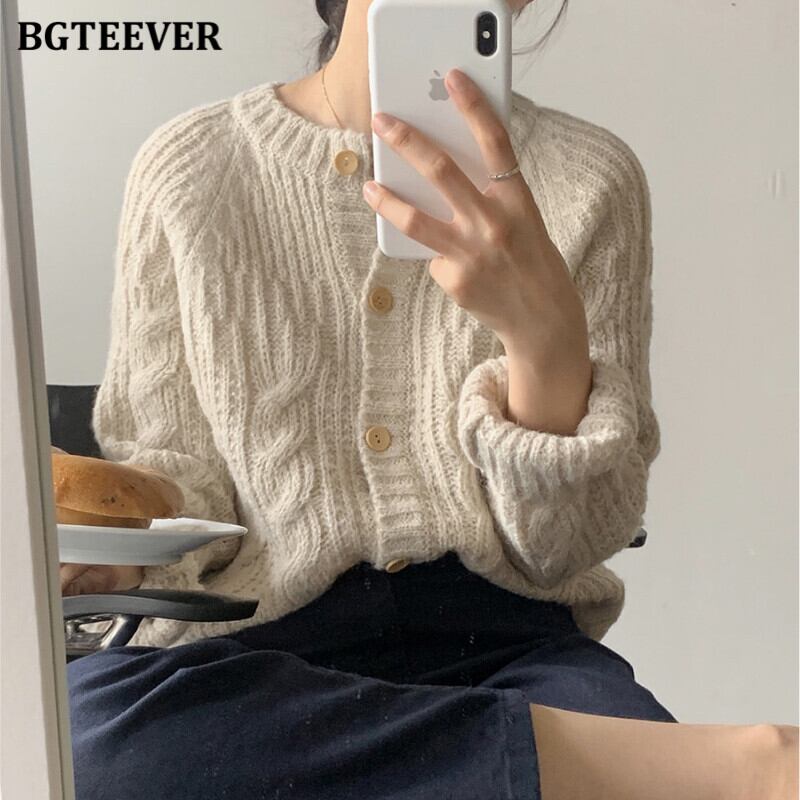 【新作】【送料無料】 BGTEEVERヴィンテージOネックニットカーディガンジャンパー2020シングルブレスト女性ツイストセーター秋冬シックなニットウェア オータム 秋物 ウィンター 冬物 ビンテージ 12b171435700699