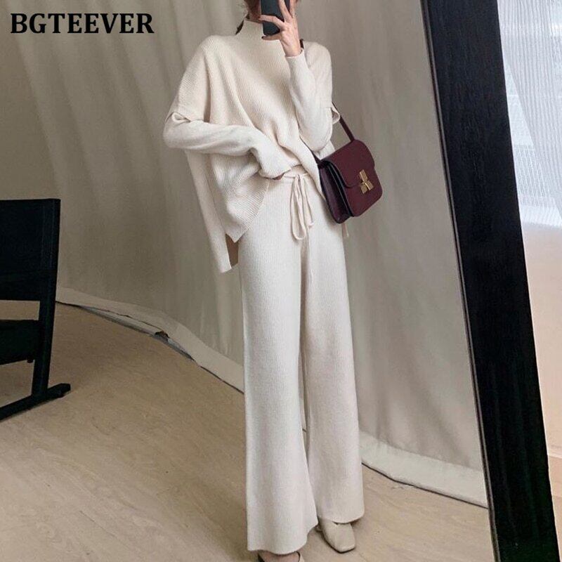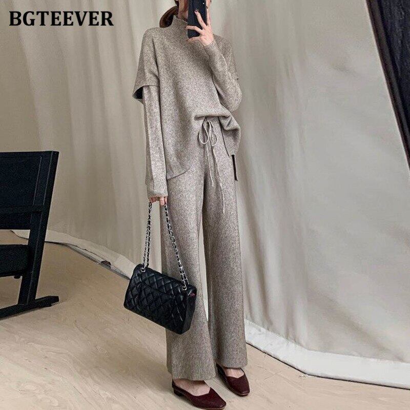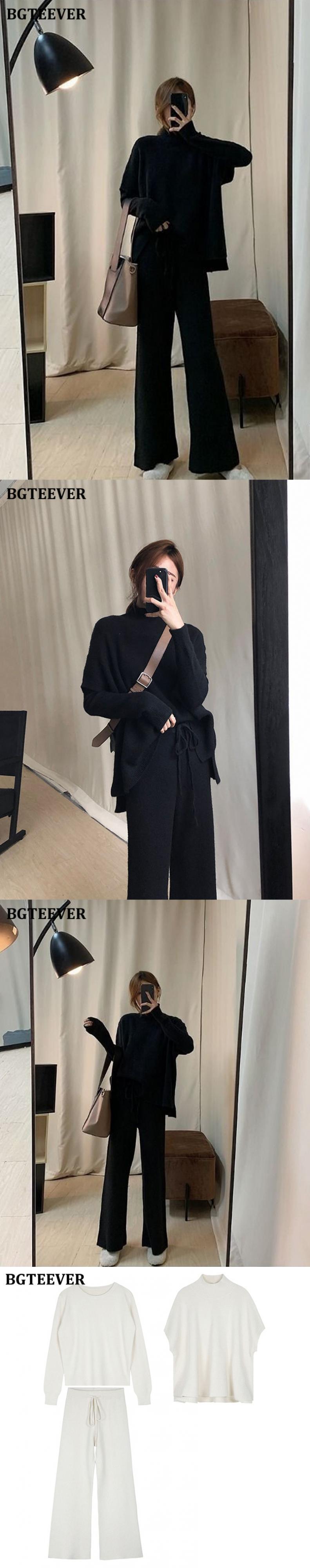 【新作】【送料無料】 BGTEEVER Winter3ピースセーターセットレディースハーフタートルネックベスト&Oネックプルオーバー&レースアップルーズパンツ2020ニットセット ウィンター 冬物 12b11785646027