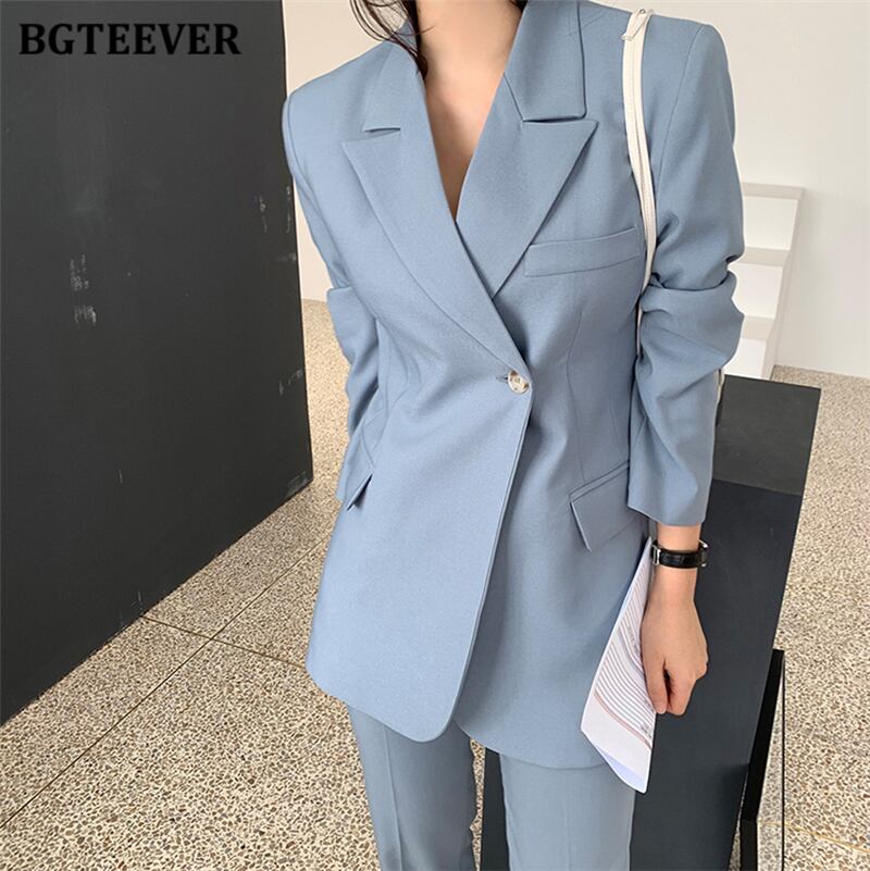 【新作】【送料無料】 BGTEEVER2ピースブレザーセットシングルボタンノッチ付きカラージャケット&スーツパンツ2020秋女性パンツスーツ オータム 秋物 12b159343564162