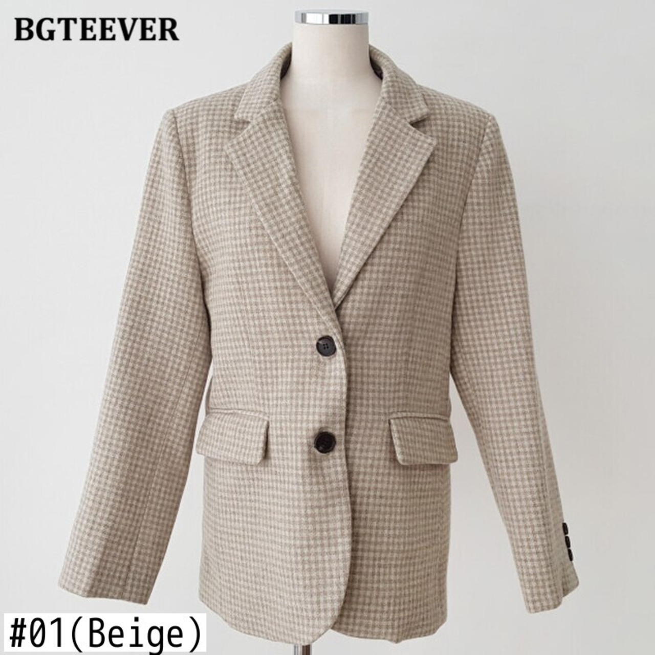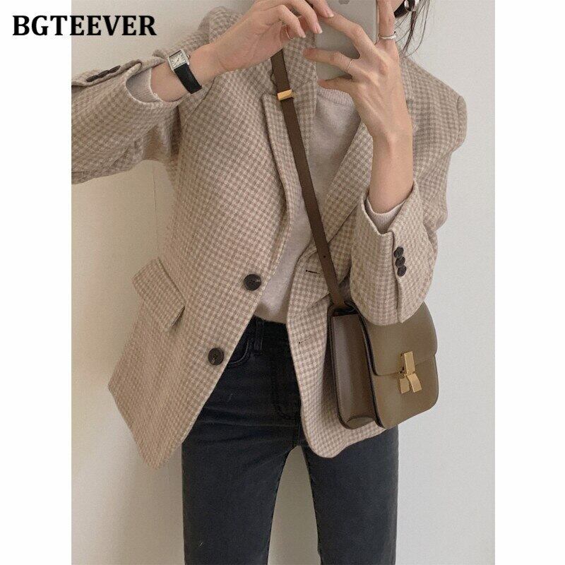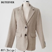 【新作】【送料無料】 BGTEEVERシックなノッチカラーレディースチェック柄スーツジャケット秋冬シックルースシングルブレストブレイザー2020アウター オータム 秋物 ウィンター 冬物 12b133987809827