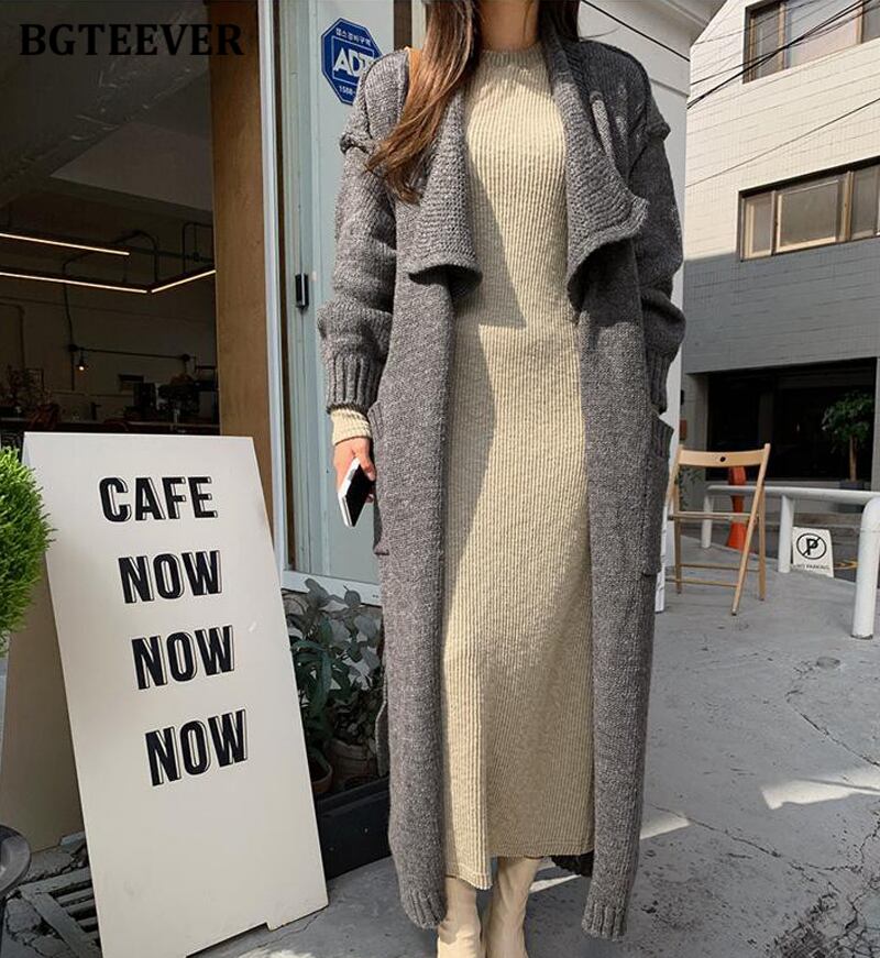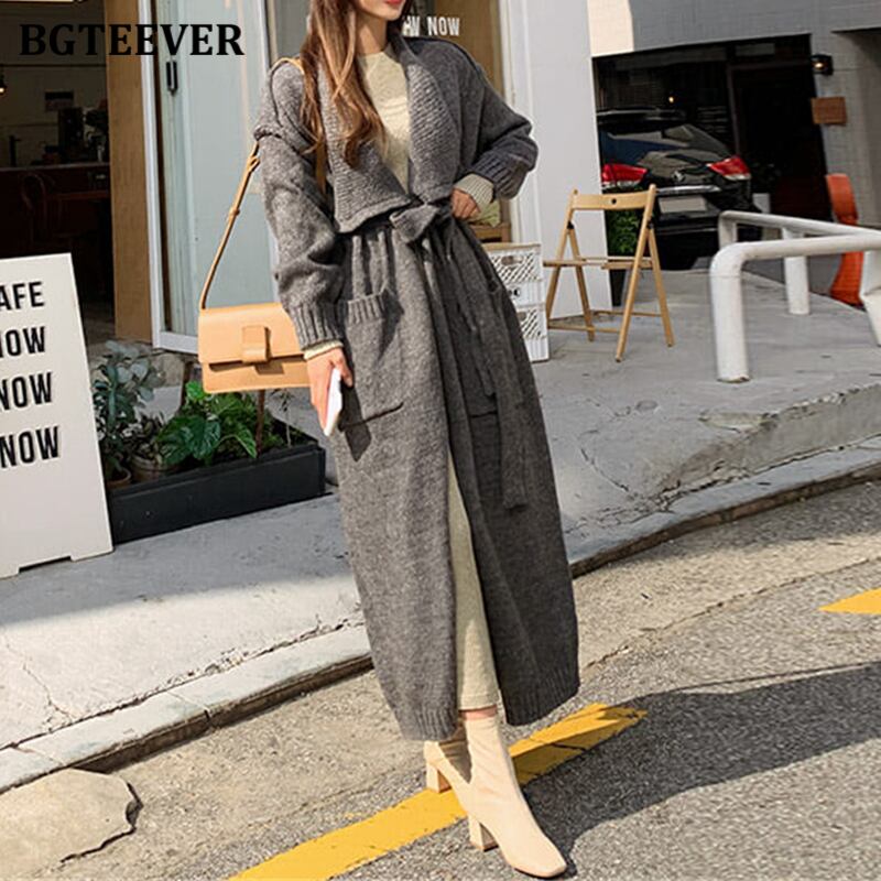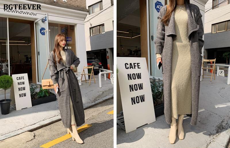 【新作】【送料無料】 BGTEEVERシックンウォームルースウィンターオープンステッチセーターオーバーサイズレースアップポケットレディースロングニットカーディガン2020 冬物 12b197453558883
