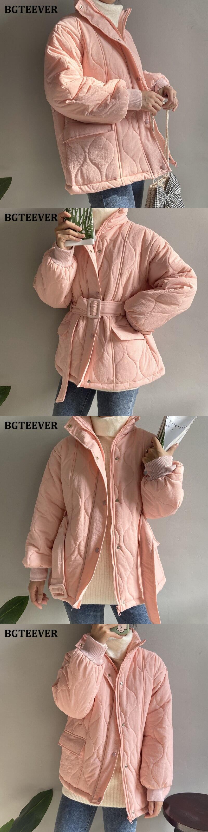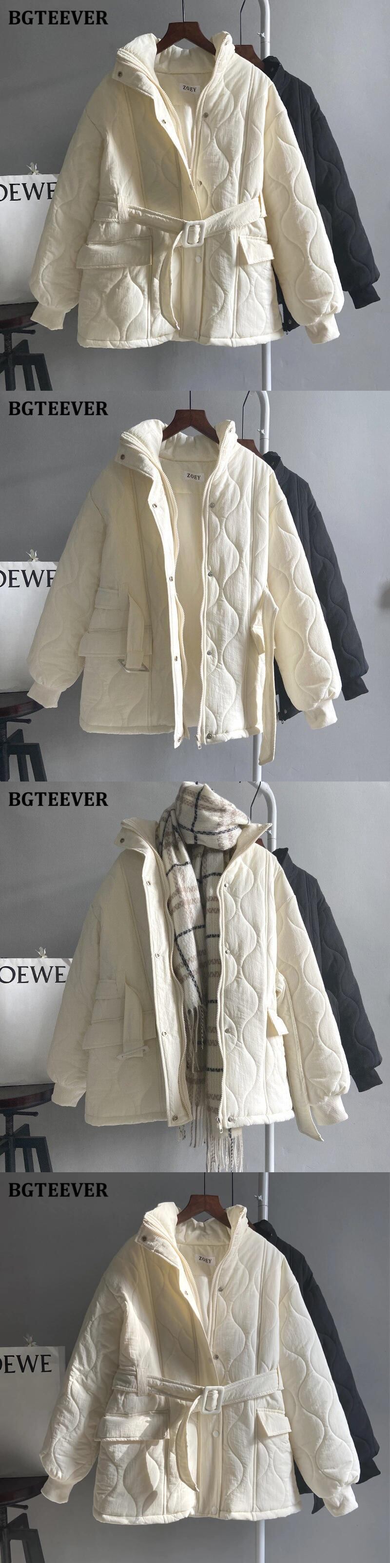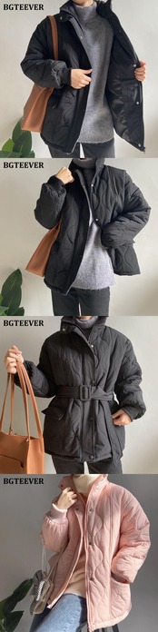 【新作】【送料無料】 ウィンターシックンコートレディースシングルブレストチェック柄パーカーフルスリーブベルト付きコットンパッド入りパーカー 冬物 ハーネス 12b151418520502