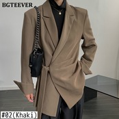 【新作】【送料無料】 BGTEEVERノッチカラーレースアップレディースブレザーヴィンテージルーズロングスリーブ秋冬アウタートップスジャケット2020 長袖 オータム 秋物 ウィンター 冬物 ビンテージ 12b143434330615