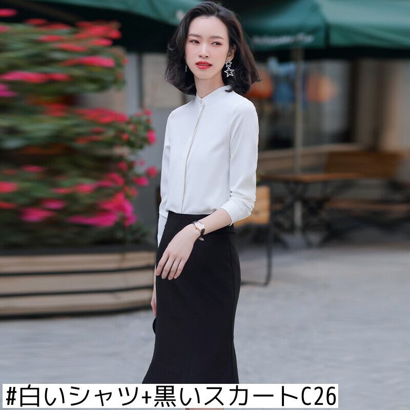色:白い,フルーツグリーン,白いシャツ+黒いスカートC26,フルーツグリーンシャツ+ブラックパンツB87