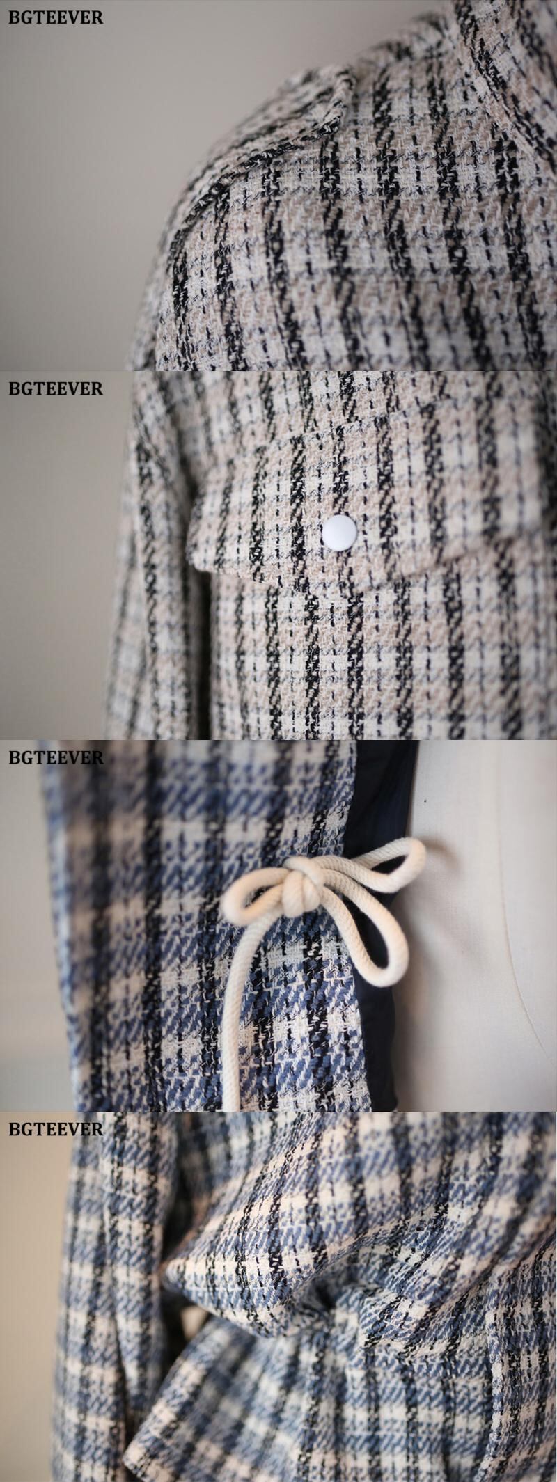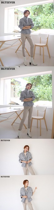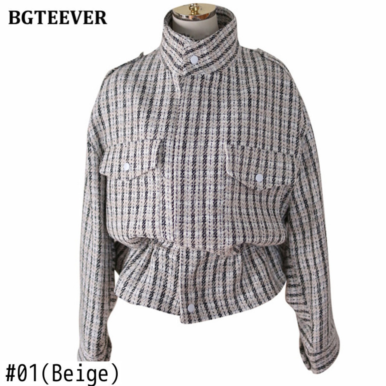 【新作】【送料無料】 BGTEEVERスタンドカラーレディースチェック柄ジャケットジッパーアップスリムウエストアウタージャケット2020年秋冬 オータム 秋物 ウィンター 冬物 12b183127742410