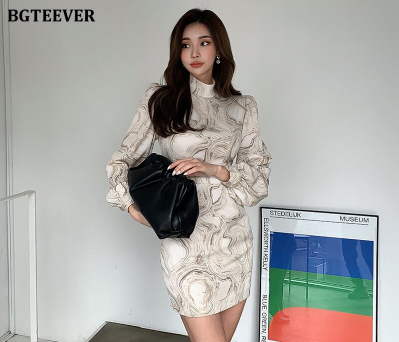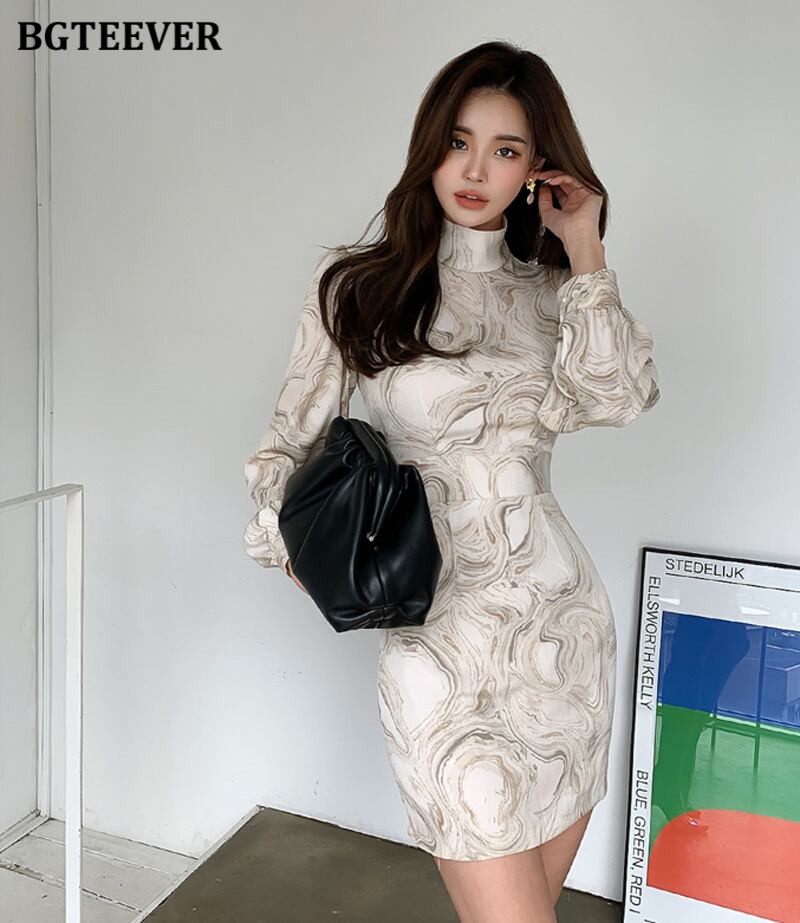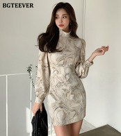 【新作】【送料無料】 BGTEEVERヴィンテージスタンドカラープリントパッケージヒップミニドレスレディーススリムウエストボディコンショートドレス秋のVestidos オータム 秋物 ビンテージ 12b112431553142