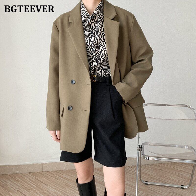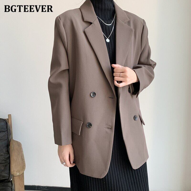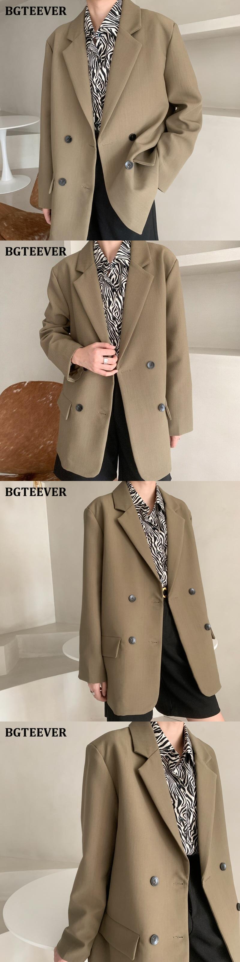 【新作】【送料無料】 BGTEEVERルーズダブルブレザージャケットレディースオフィスウェアフルスリーブソリッドジャケットアウター2020 ソリッドカラー 会社 学校 通勤や通学にも 12b151029944775