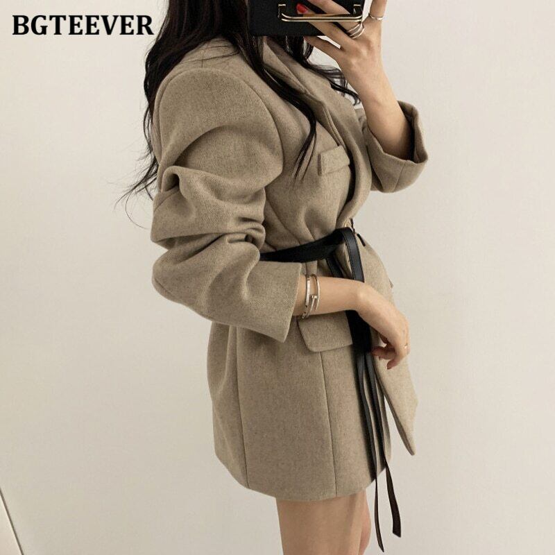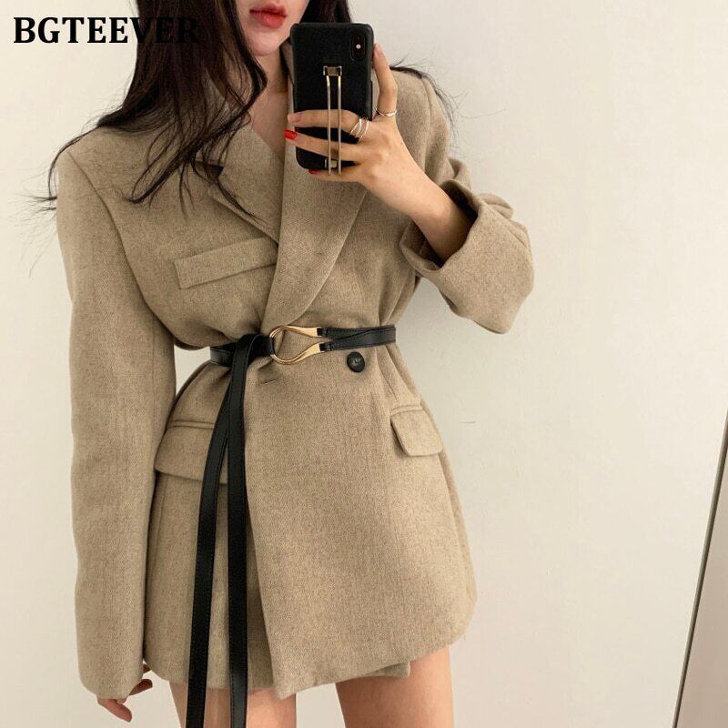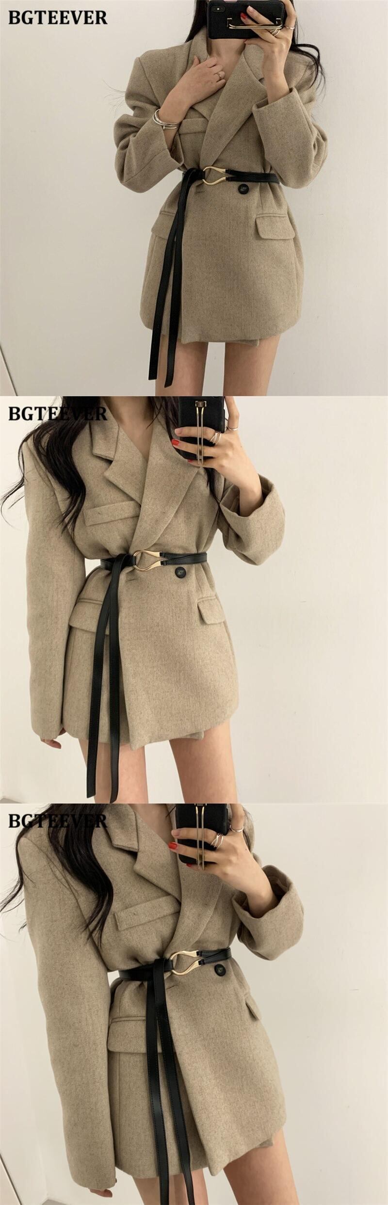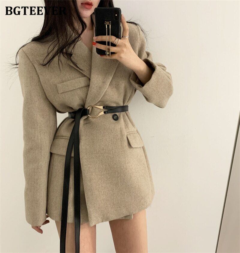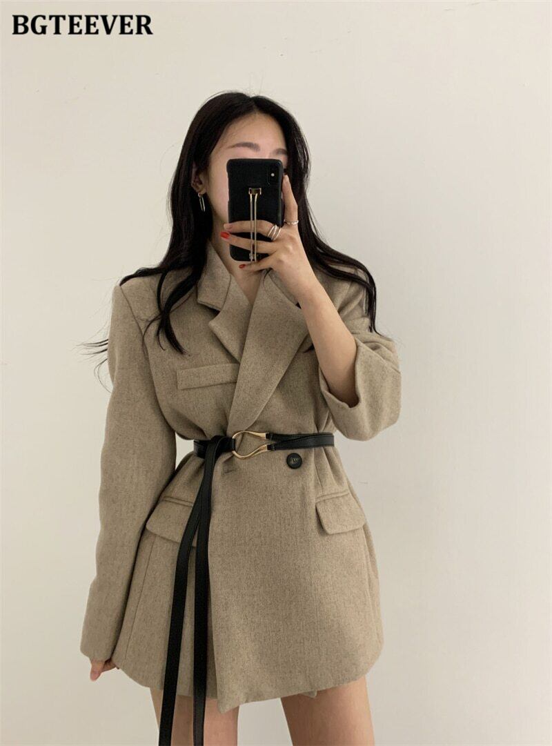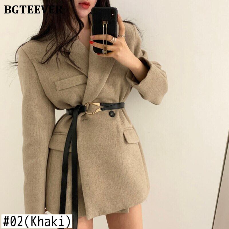 【新作】【送料無料】 BGTEEVERノッチカラーベルト付きレディースブレザー秋冬厚手ルーズダブルボタンスーツジャケットアウタートップス2020 オータム 秋物 ウィンター 冬物 ハーネス 12b120483066400