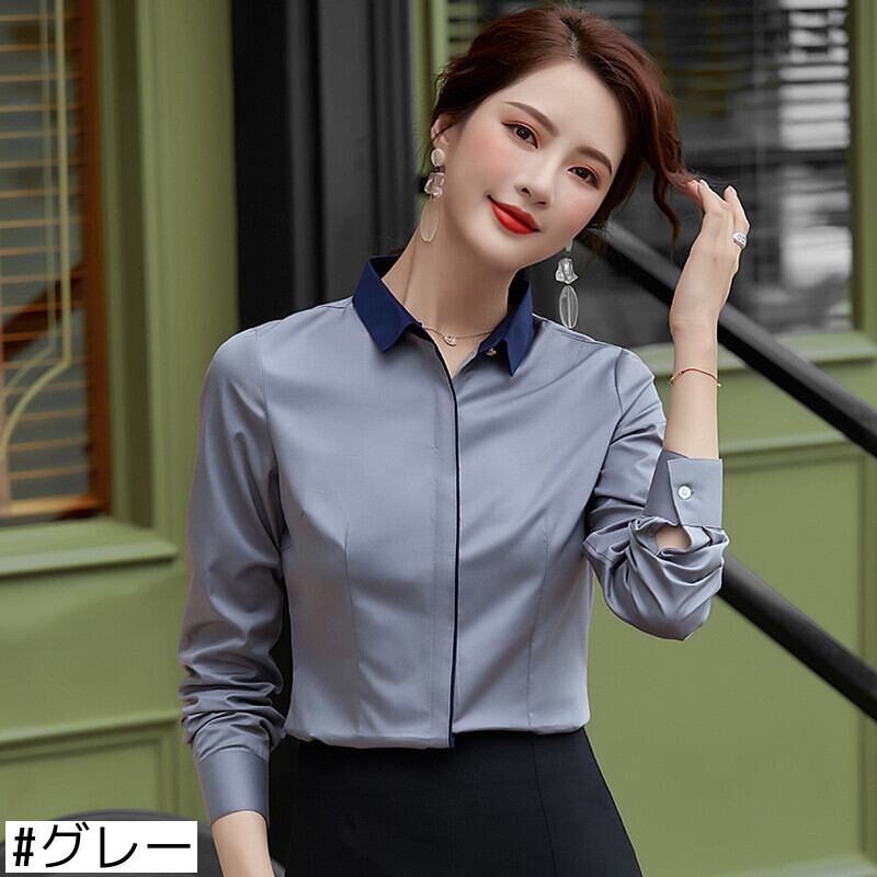 【新作】【送料無料】 リアルの長袖ステッチネックラインデザインニッチシャツ女性の2020年秋冬新デザインニッチシャツ-アリババ ロング オータム 秋物 ウィンター 冬物 12b294234958946