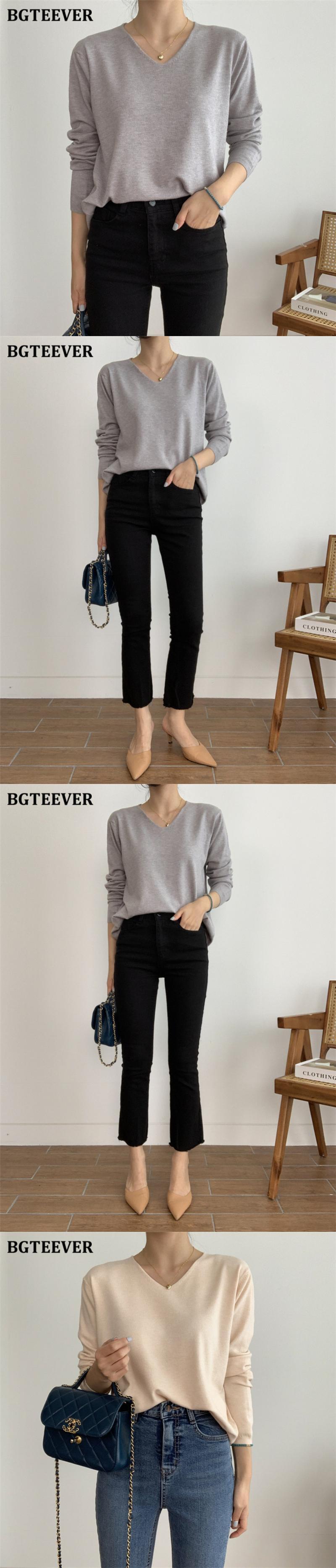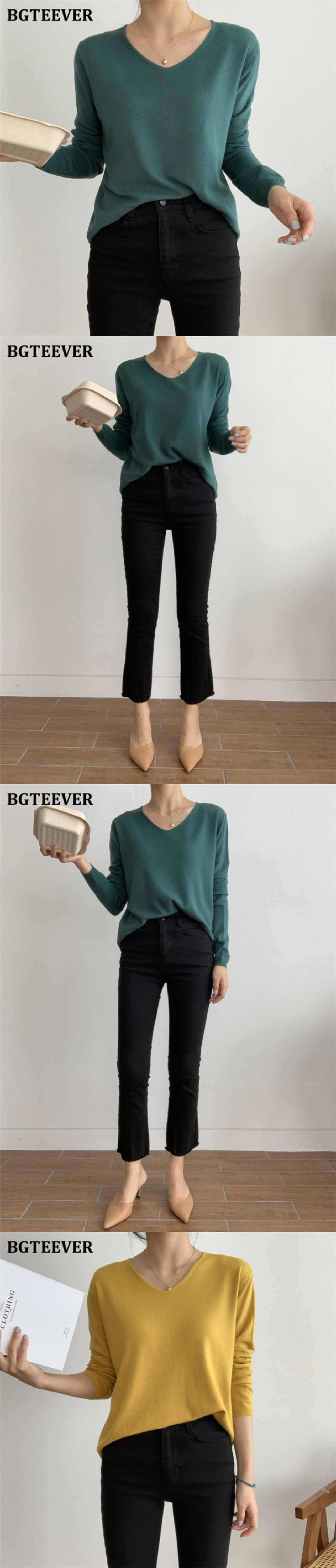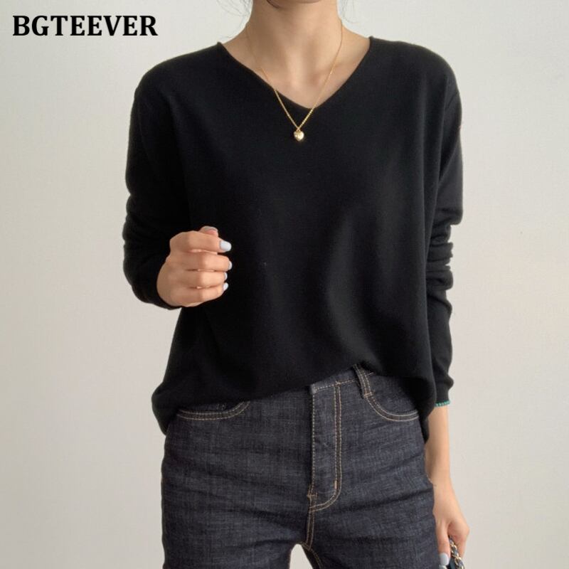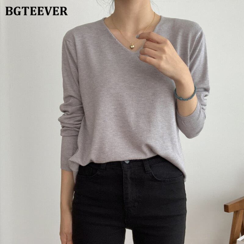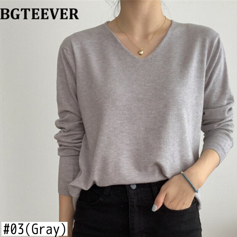 【新作】【送料無料】 BGTEEVERVネックベーシックソリッドセータージャンパーレディース2020秋冬ルーズロングスリーブソフトウォームニットプルオーバー 長袖 オータム 秋物 ウィンター 冬物 ソリッドカラー 12b126932568649
