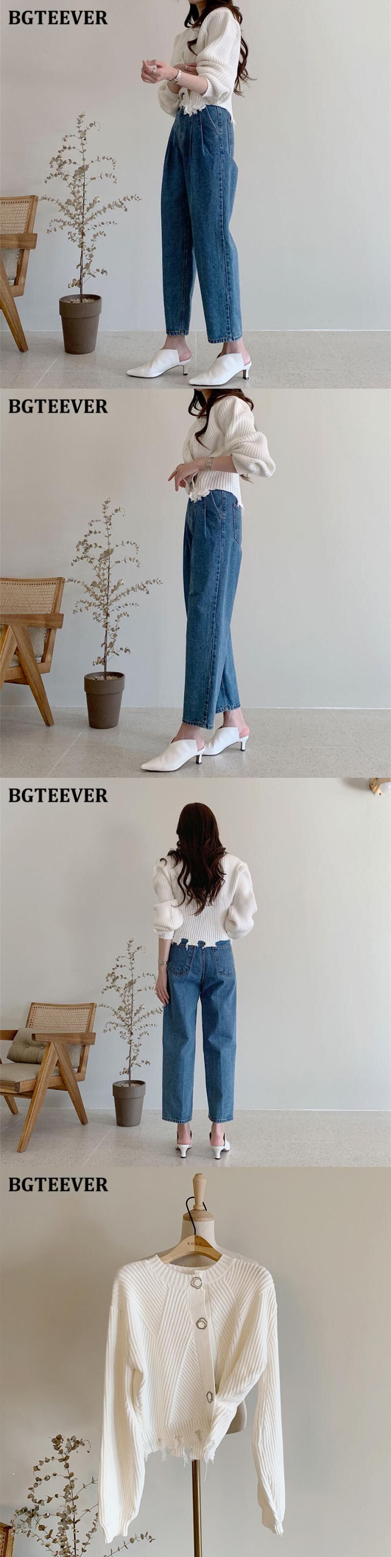 【新作】【送料無料】 BGTEEVER秋冬Oネックシングルブレストレディースニットカーディガンリップドエッジ長袖ホワイトセーター2020 ロング オータム 秋物 ウィンター 冬物 12b159794278468