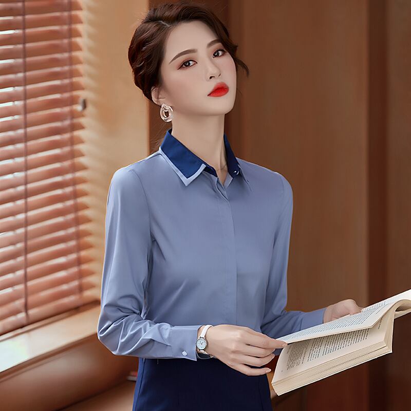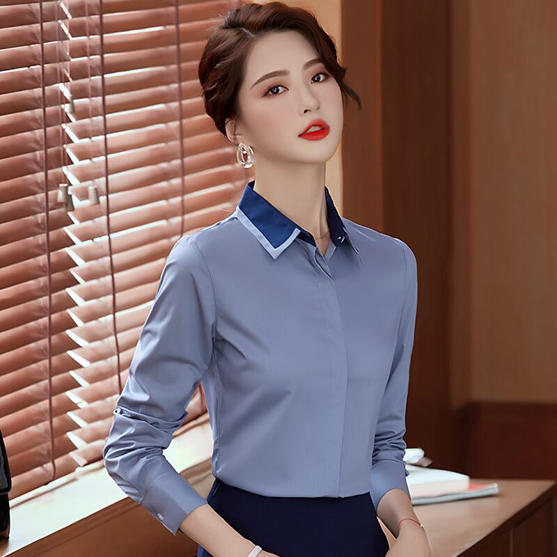 【新作】【送料無料】 本物の秋冬長袖アンチリンクルラペルシャツレディースバージョン2020新しいプロの気質マルシャツアウターウェア-アリババ ロング オータム 秋物 ウィンター 冬物 12b246467925017