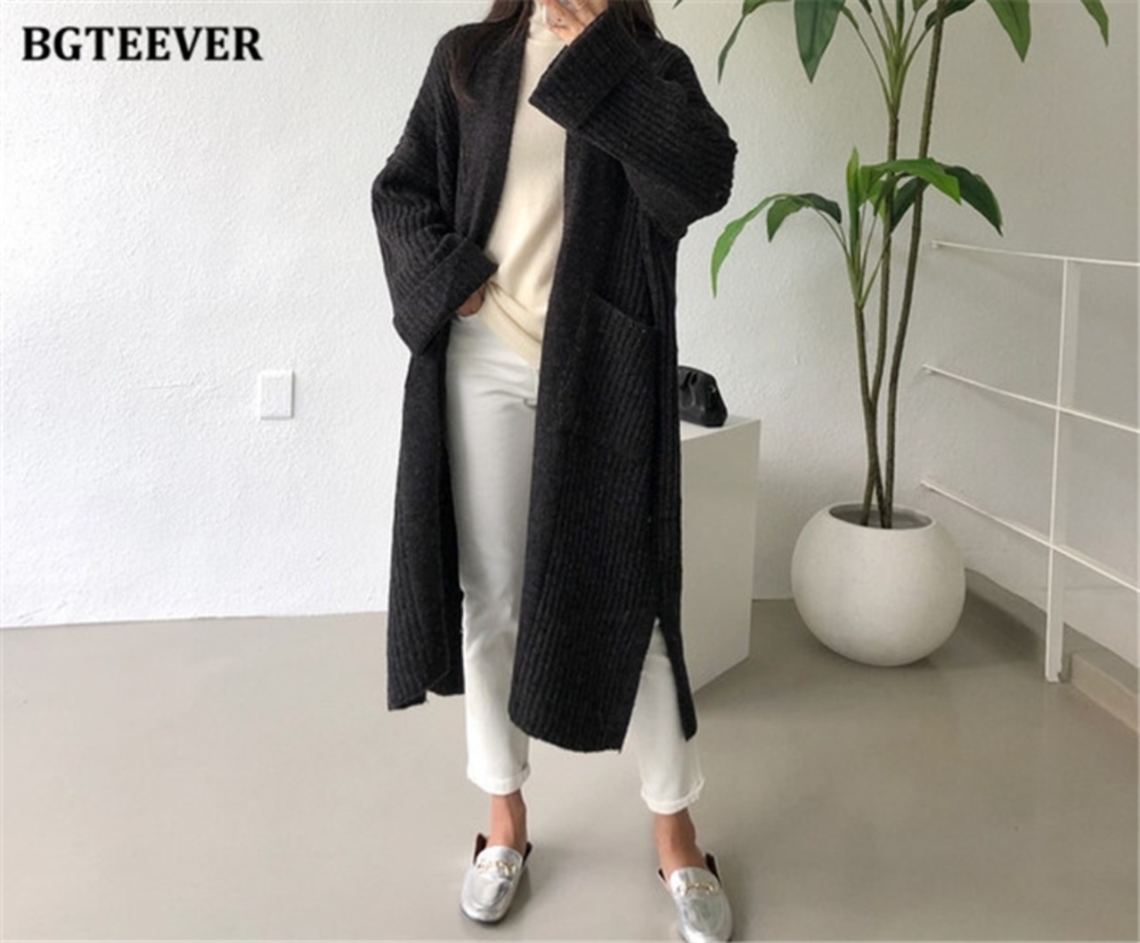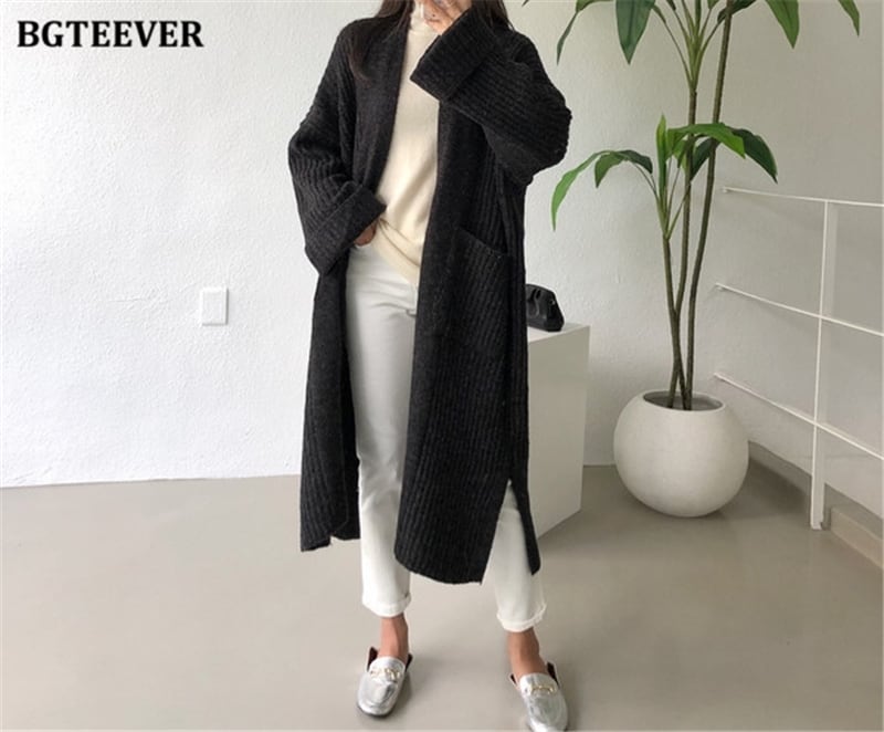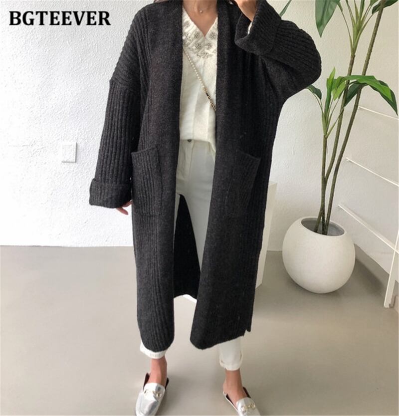【新作】【送料無料】 BGTEEVER Winter Cashmere Warm Women Knited Cardigans Thicken Open Stitch Sweater Coat 2020 Midi Knitting Outwear カーディガン ウィンター 冬物 ステッチ 12b134716737991