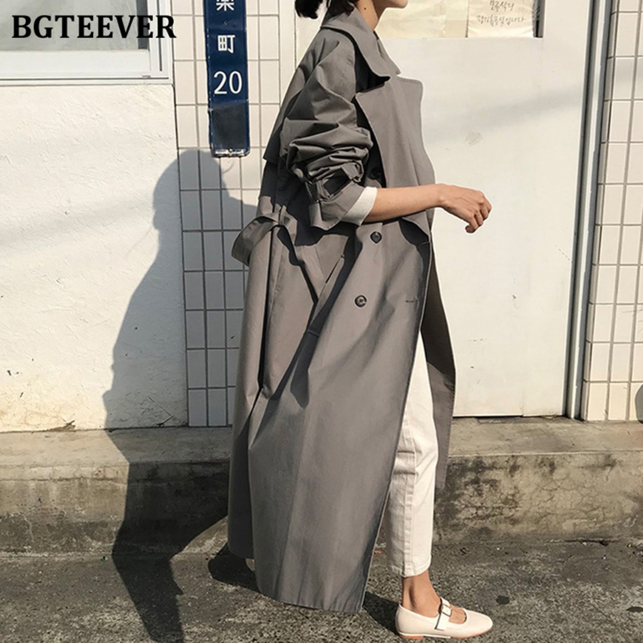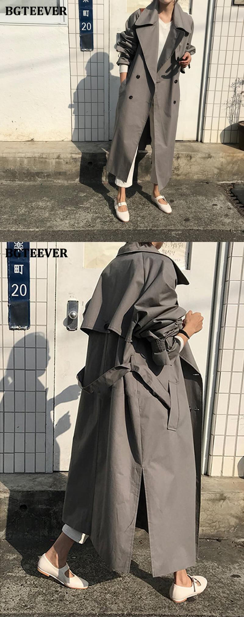 【新作】【送料無料】 BGTEEVERスタイリッシュなダブルブレストの女性ウインドブレーカー秋冬ルーズベルトサッシロングトレンチコート2020 オータム 秋物 ウィンター 冬物 ハーネス 12b162788359371
