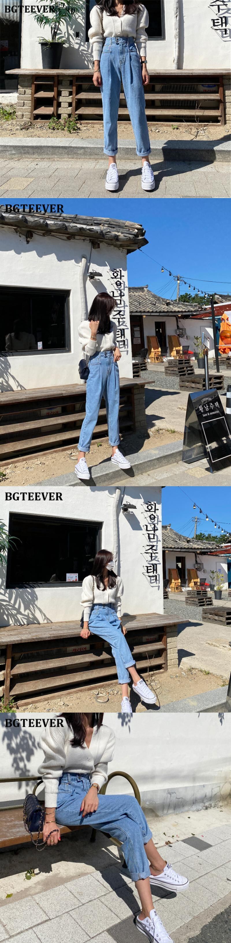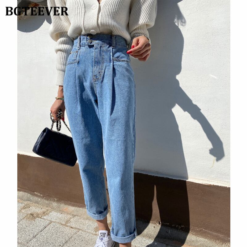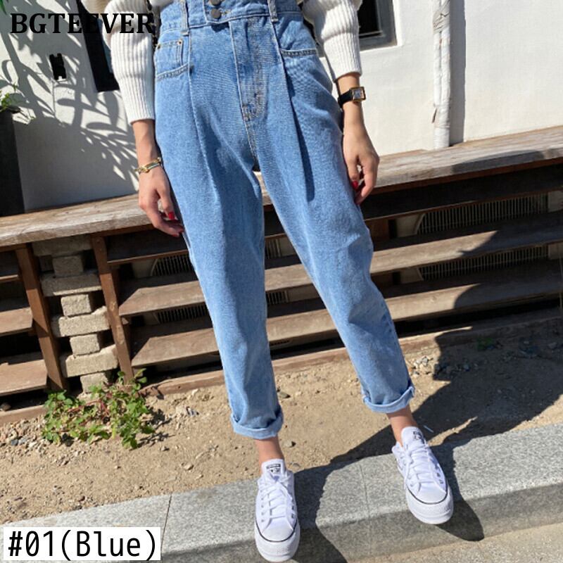 【新作】【送料無料】 BGTEEVERダブルボタンウエストレディースハーレムジーンズ秋冬ストリートウェアルーズデニムブルージーンズ2020 オータム 秋物 ウィンター 冬物 12b110446275490