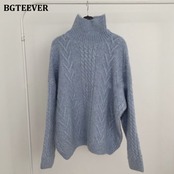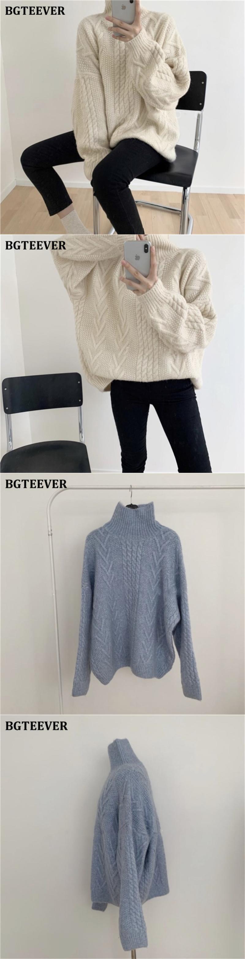 【新作】【送料無料】 BGTEEVERシックなタートルネックウォームツイスト女性ニットジャンパー2020秋冬ニットウェアルーズセーター女性 オータム 秋物 ウィンター 冬物 12b170164234489
