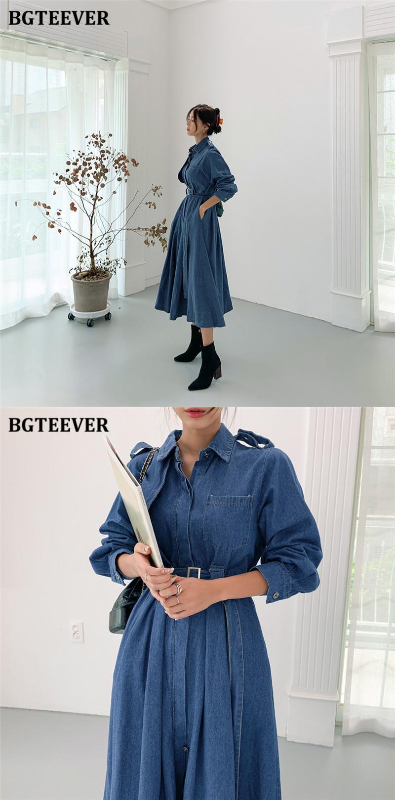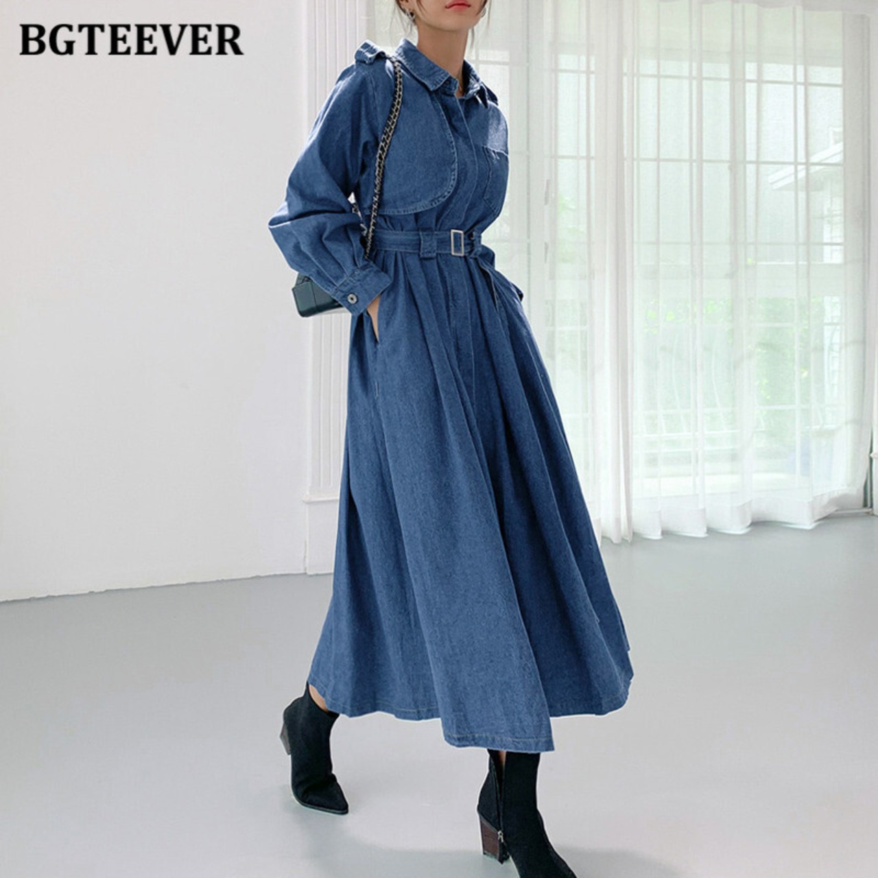 【新作】【送料無料】 ヴィンテージシックな女性Aラインロングデニムドレス秋冬シングルブレストベルトジーンズドレスルーズベスティドス オータム 秋物 ウィンター 冬物 ハーネス ビンテージ 12b134483202242