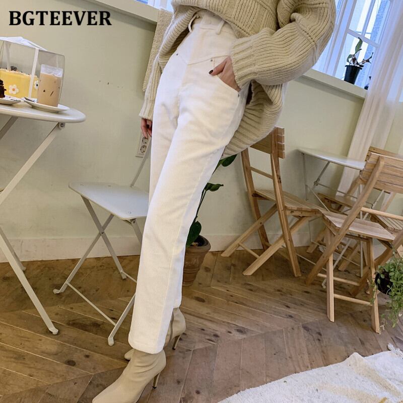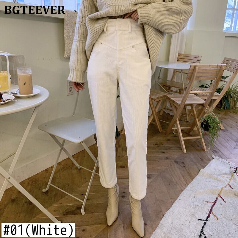 【新作】【送料無料】 BGTEEVER秋冬ストリートウェアダブルボタンレディースホワイトコーデュロイパンツウエストルーズハーレムパンツ2020 オータム 秋物 ウィンター 冬物 12b140700545442