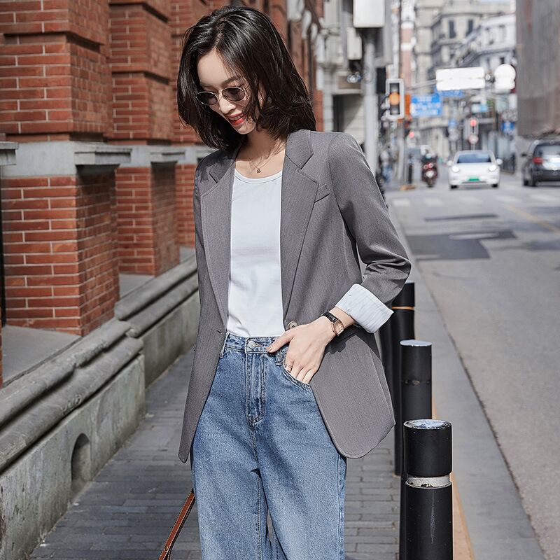 【新作】【送料無料】 リアルの無地のスモールスーツジャケットレディーストップ2020秋冬の新しいカジュアル気質スーツシンプルトップラージサイズ-アリババ 大きめサイズ オータム 秋物 ウィンター 冬物 ソリッドカラー 12b269003597860