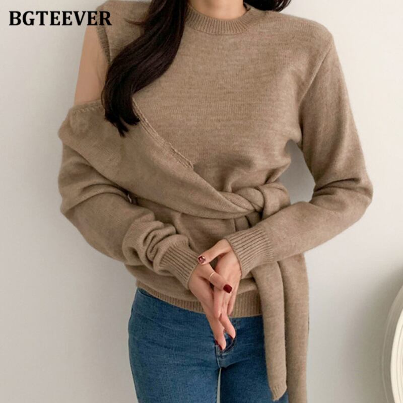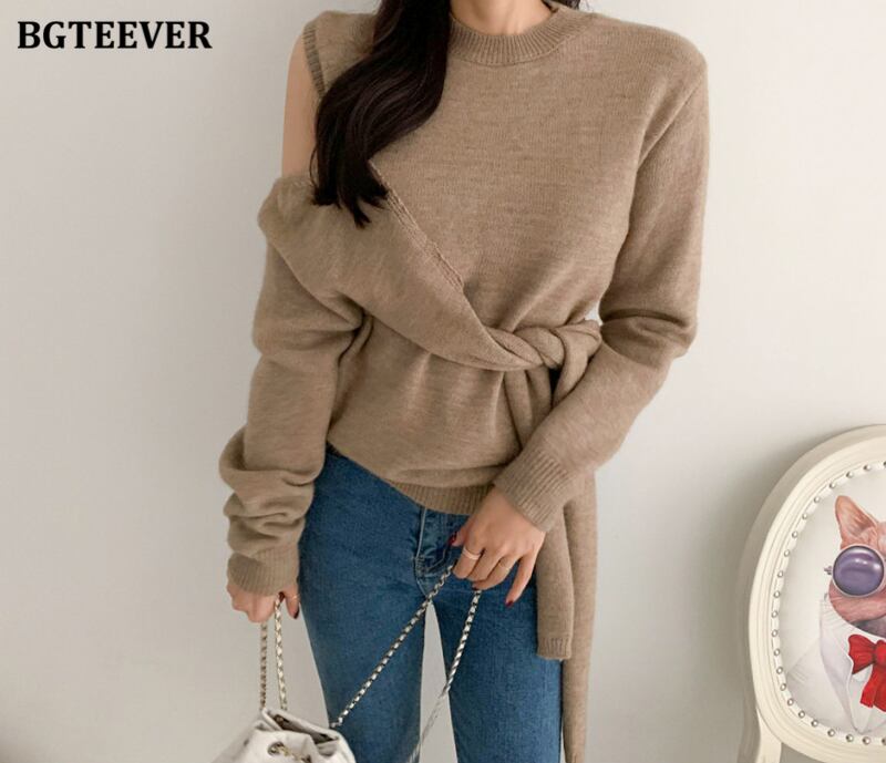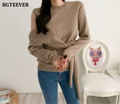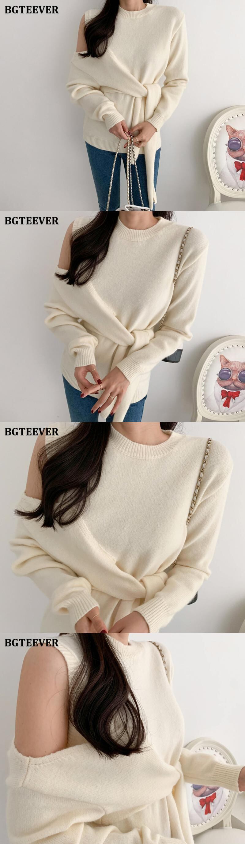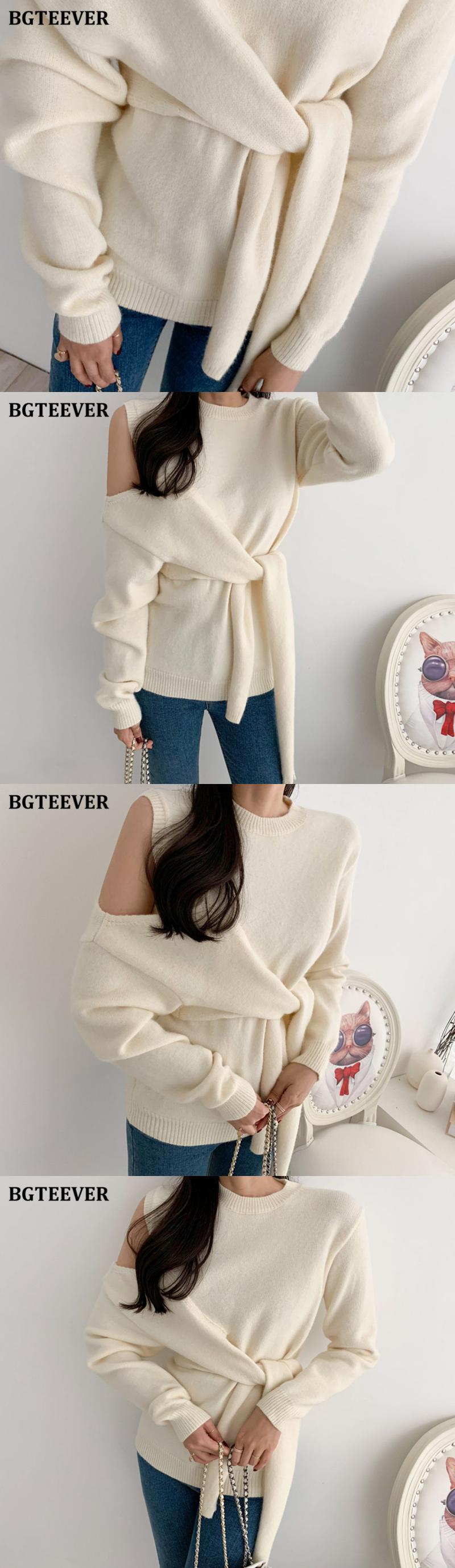 【新作】【送料無料】 BGTEEVERシックな秋冬ホローアウトプルオーバーセーター女性スタイリッシュな暖かいフルスリーブレースアップニットセーター2020 オータム 秋物 ウィンター 冬物 12b112089633093