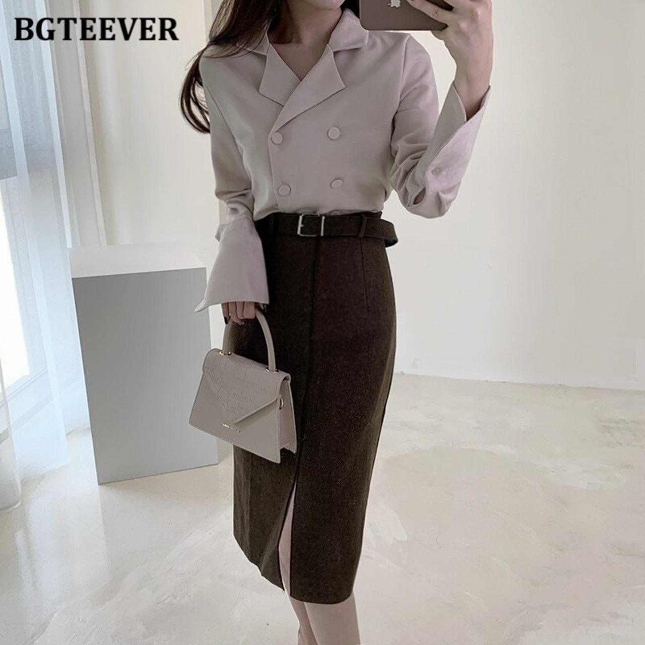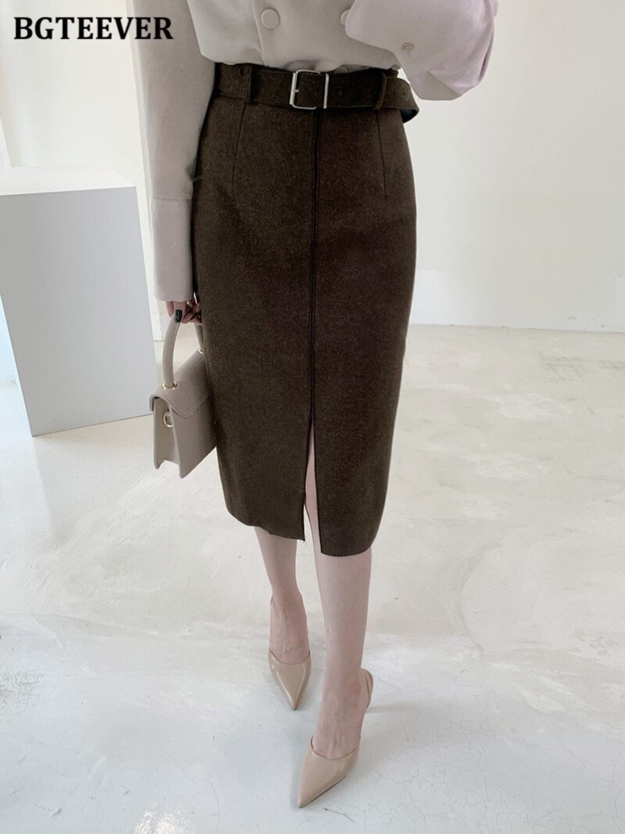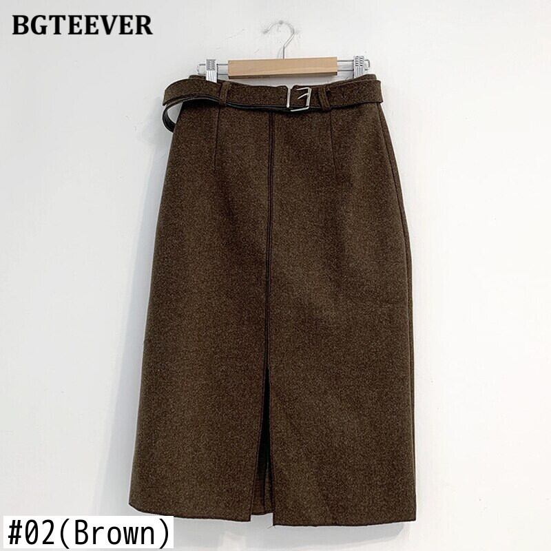 【新作】【送料無料】 BGTEEVER秋冬ウールミディスカートウエストベルトスプリットオフィスペンシルスカート2020 オータム 秋物 ウィンター 冬物 ハーネス 会社 学校 通勤や通学にも 12b121766750715