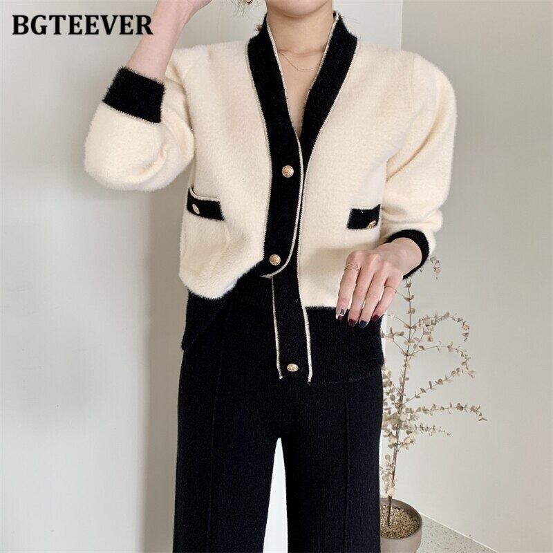 【新作】【送料無料】 BGTEEVERオフィスパッチワークVネックオープンステッチセーター2020秋冬シングルブレストポケットニットカーディガン オータム 秋物 ウィンター 冬物 会社 学校 通勤や通学にも 12b156026300291