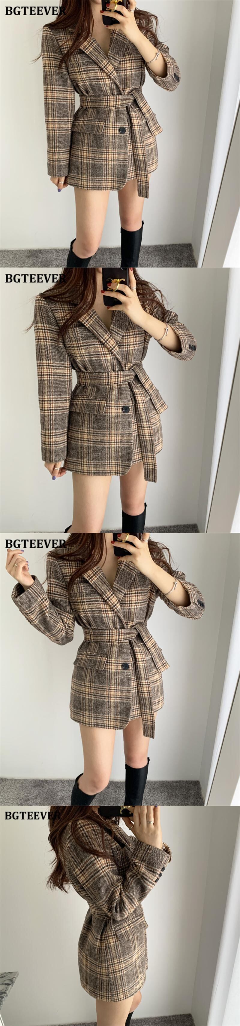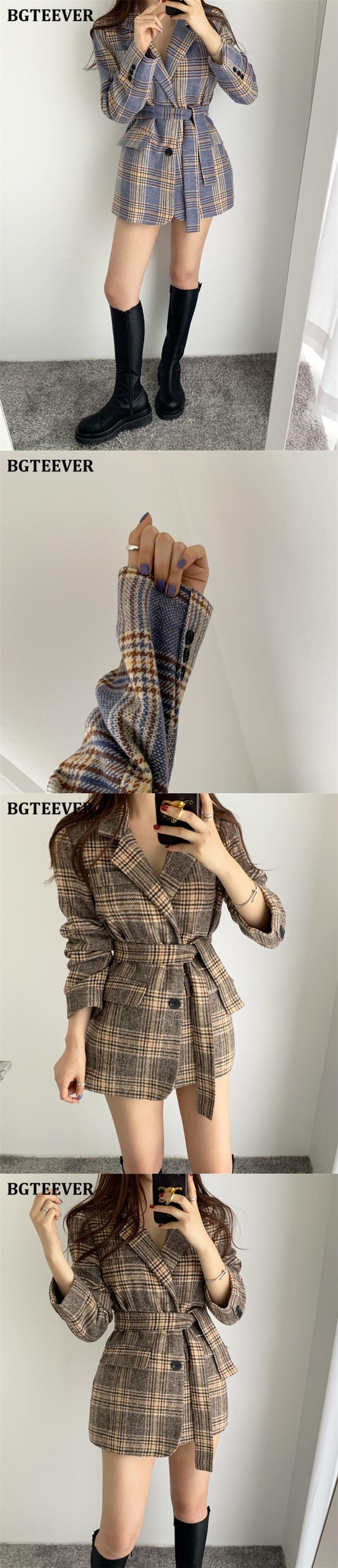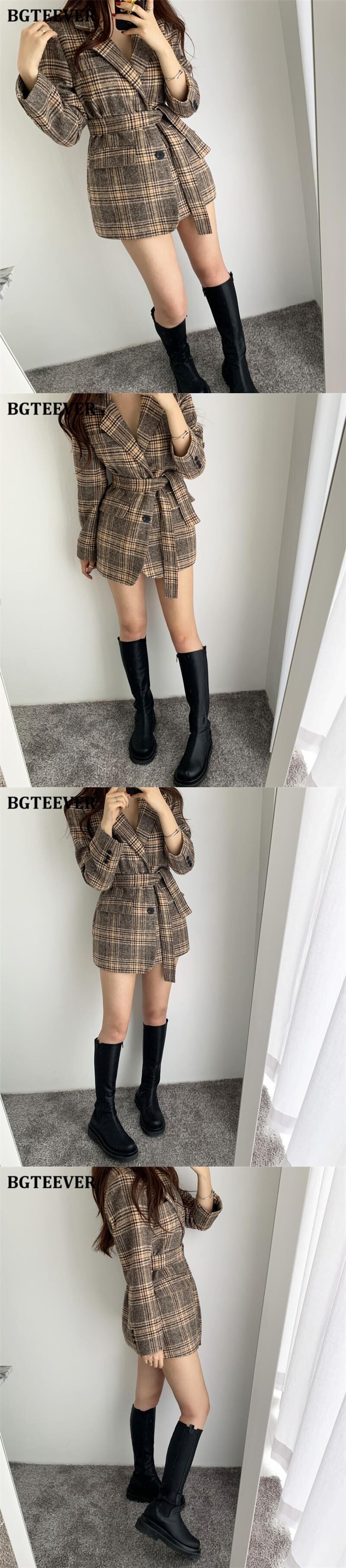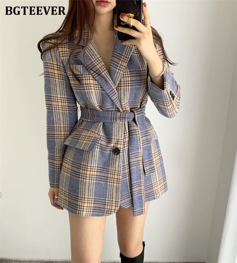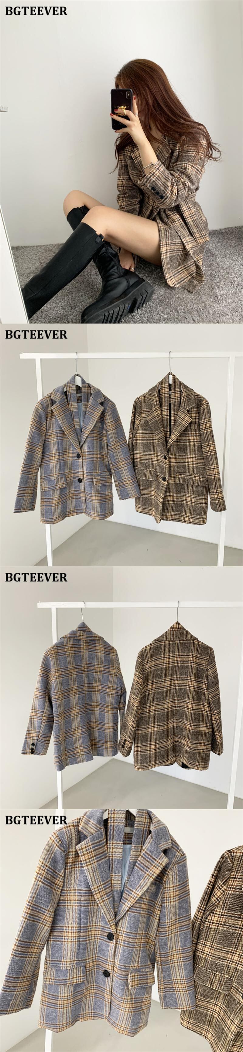 【新作】【送料無料】 BGTEEVERヴィンテージノッチカラー冬女性チェック柄ブレイザー2020冬シングルブレストレースアップシックンジャケット ウィンター 冬物 ビンテージ 12b190206854978