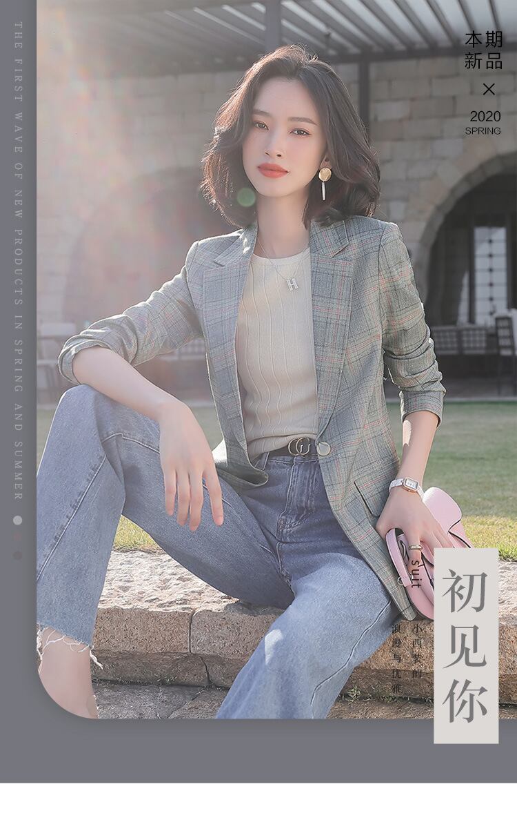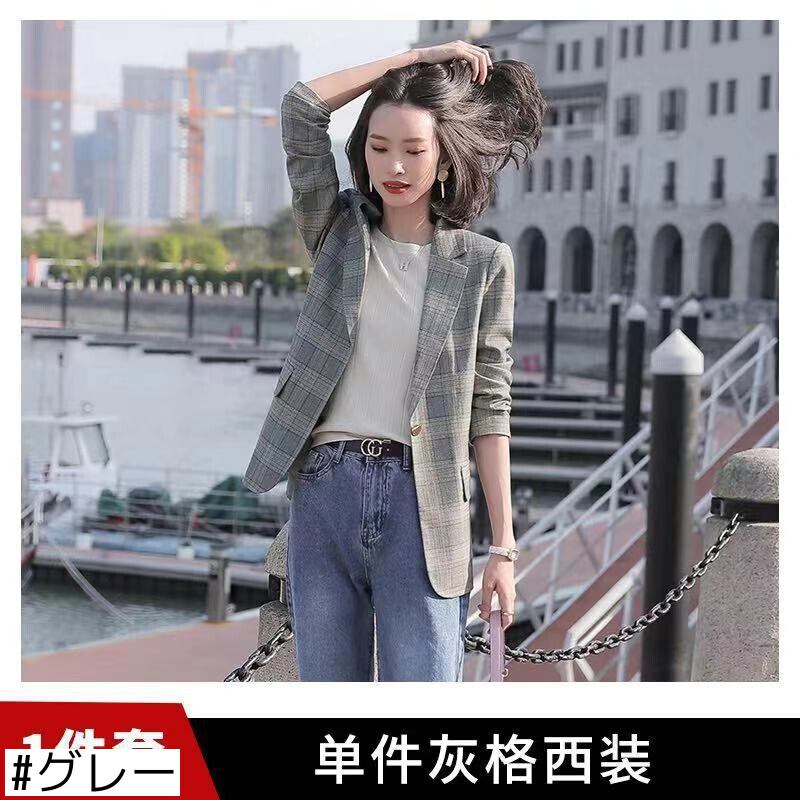 【新作】【送料無料】 2020新しい格子縞の小さなスーツジャケット女性の大きなサイズのルーズファッション秋と冬の英国スタイルの気質スーツ-アリババ 大きめサイズ オータム 秋物 ウィンター 冬物 12b247135729499